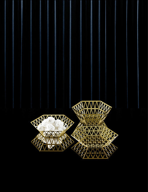 The Tip Top series of accessories all share the same curious visual effect. When viewed from above, the triangles which form the structure of the tray all look the same size. It is only when you look at it sideways then you see the triangles stretched to create the delicate lattice walls of the hexagonal structure. The Tip Top Tall Tray is a charming and practical accessory which would look great on any dining table, kitchen counter or display shelf.