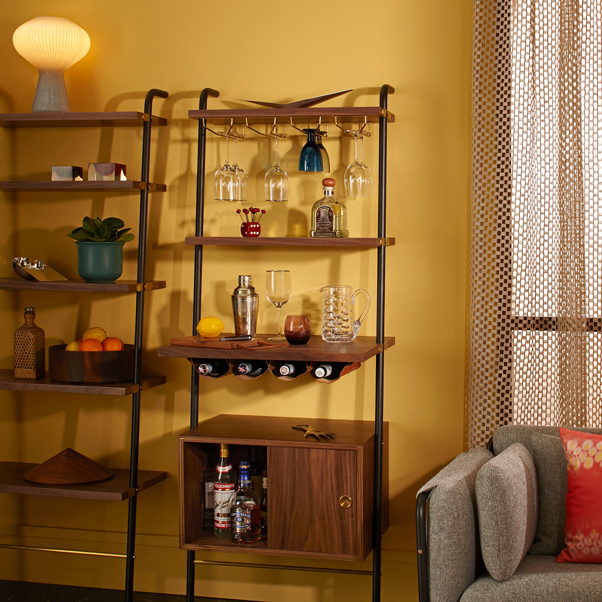 The Valet Mixology Centre is a stylish and functional set of shelves and cabinet. Its design is inspired by the roots of the word "valet" with its luxury and gentlemanly connotations updated for contemporary living.