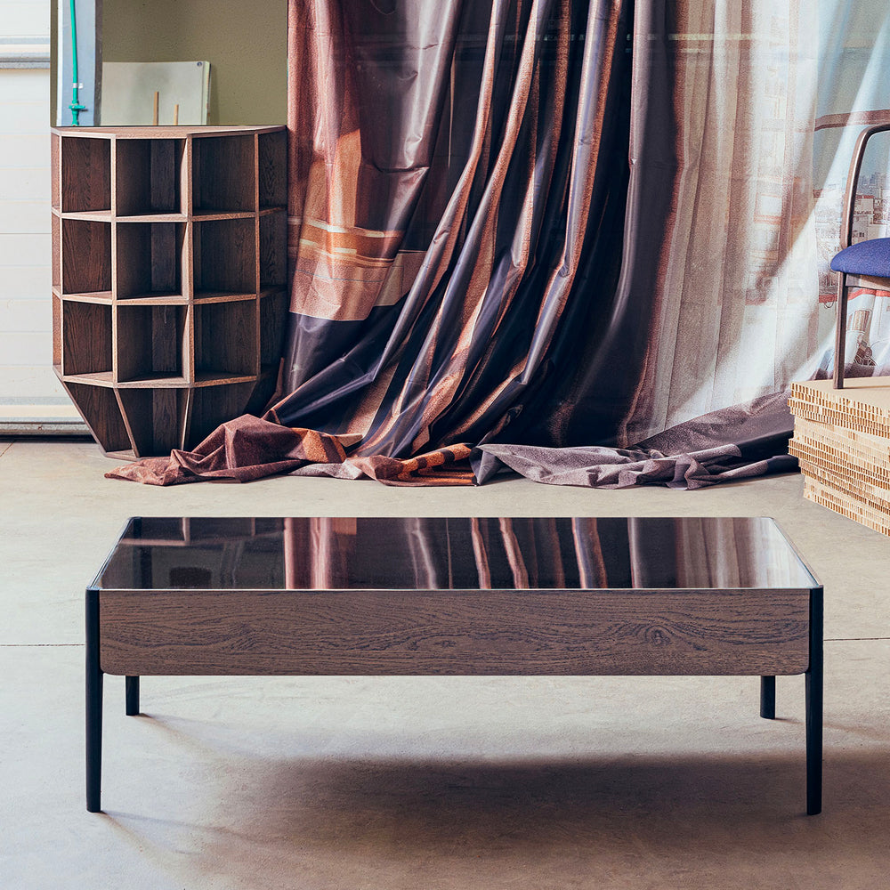 The Diorama Coffee Table is an elegant and versatile table inspired by cabinets of curiosities: it features a solid wood case with a clear glass top. An easy opening system makes it easy for you to store and retrieve objects inside the case, inviting you to display treasures as a curator. The table is available in 3 sizes.