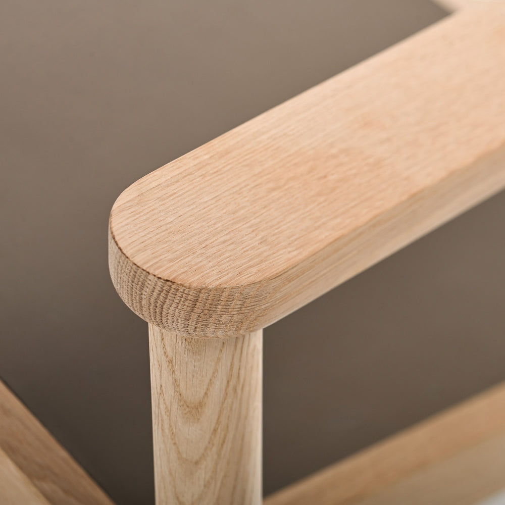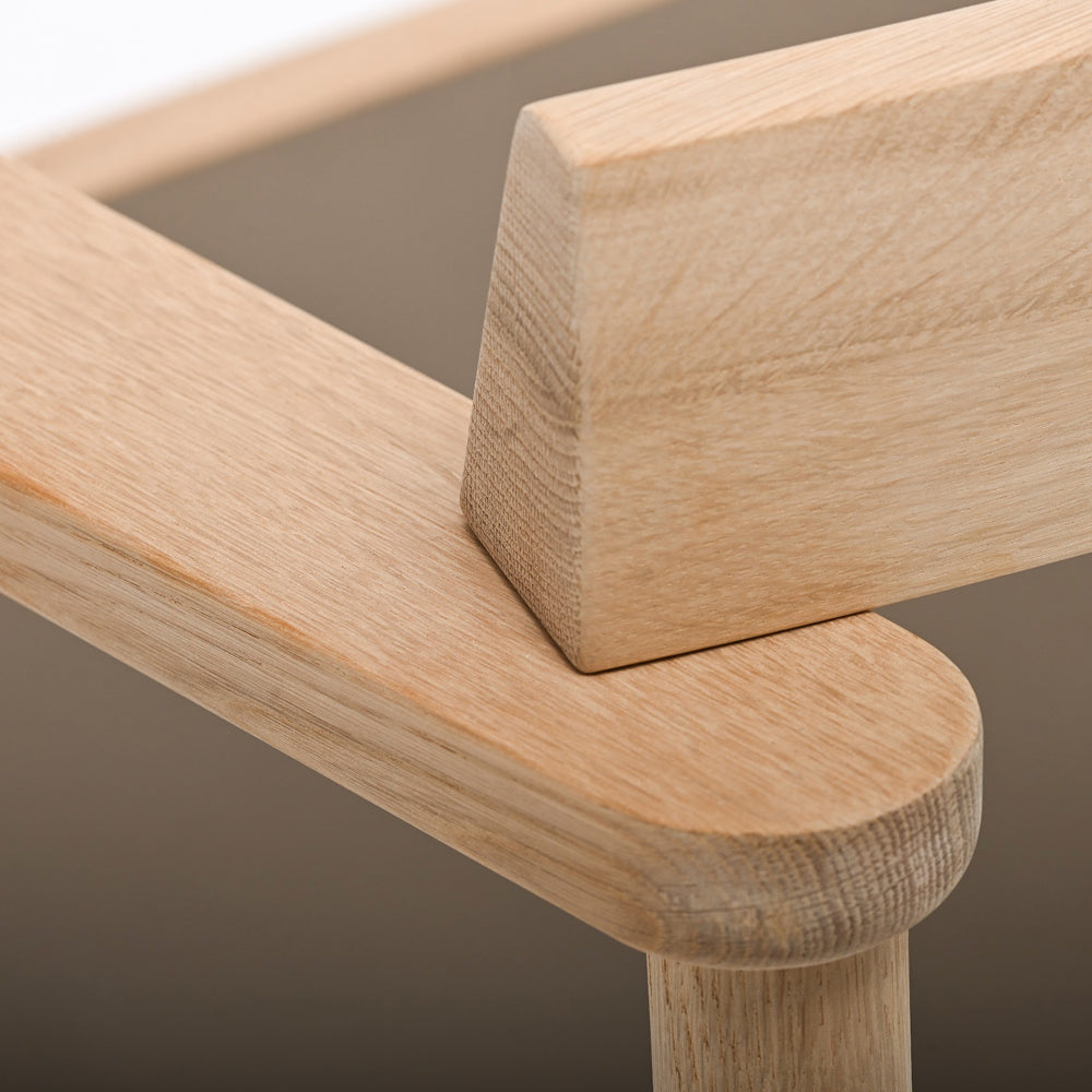Frame: solid oak or walnut wood in various finishes; treatment: lacquer or oil