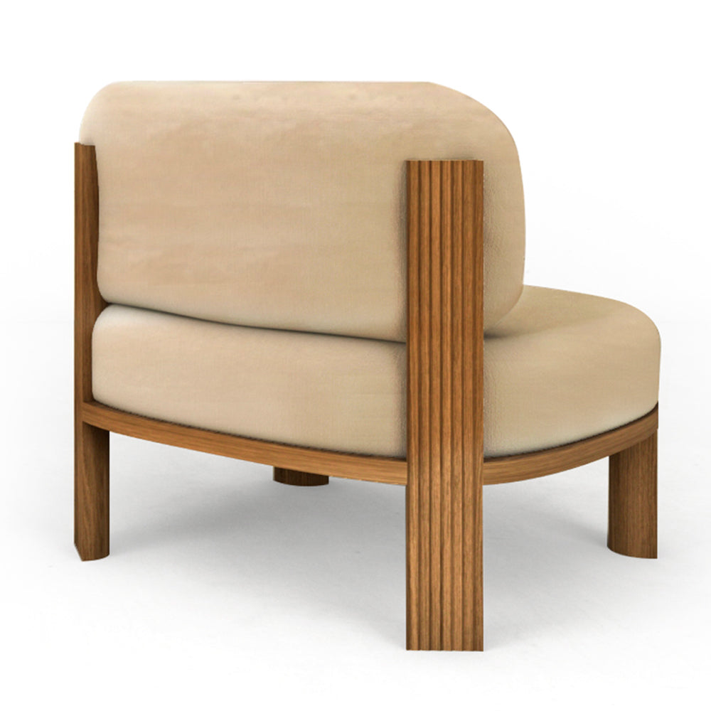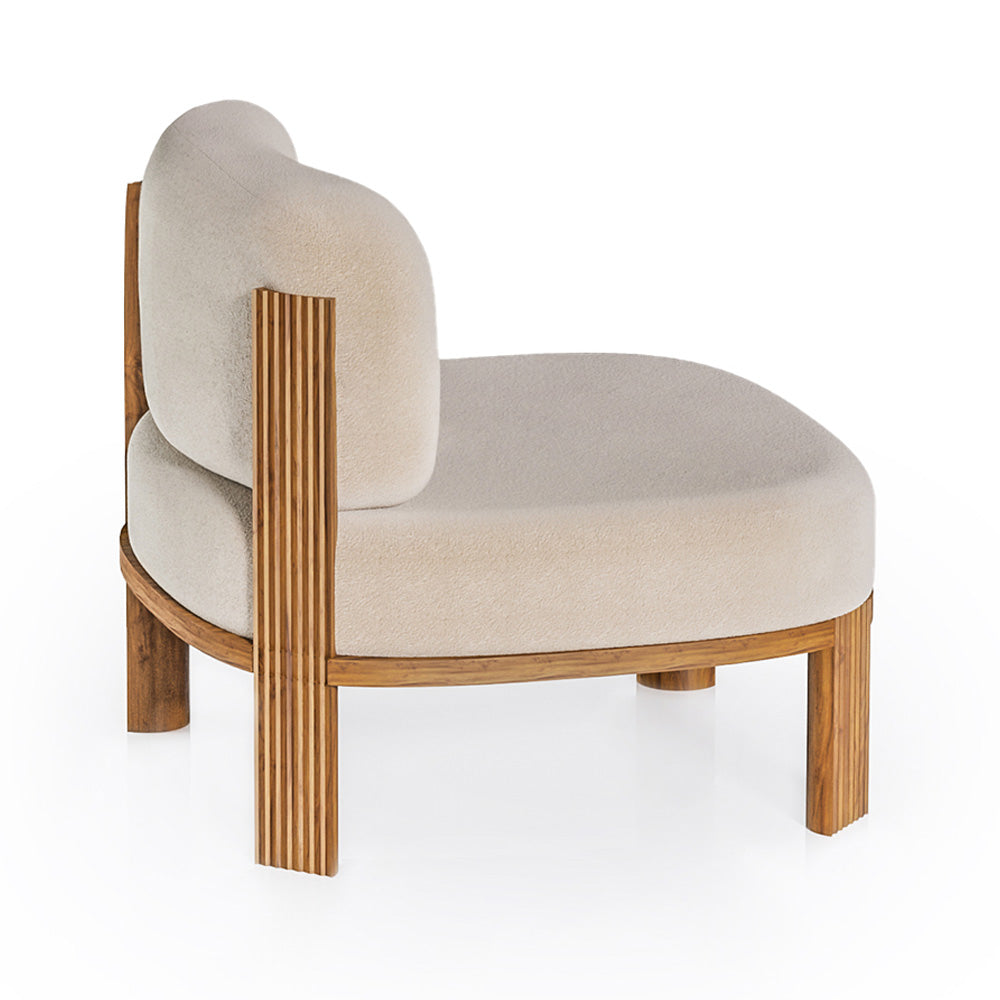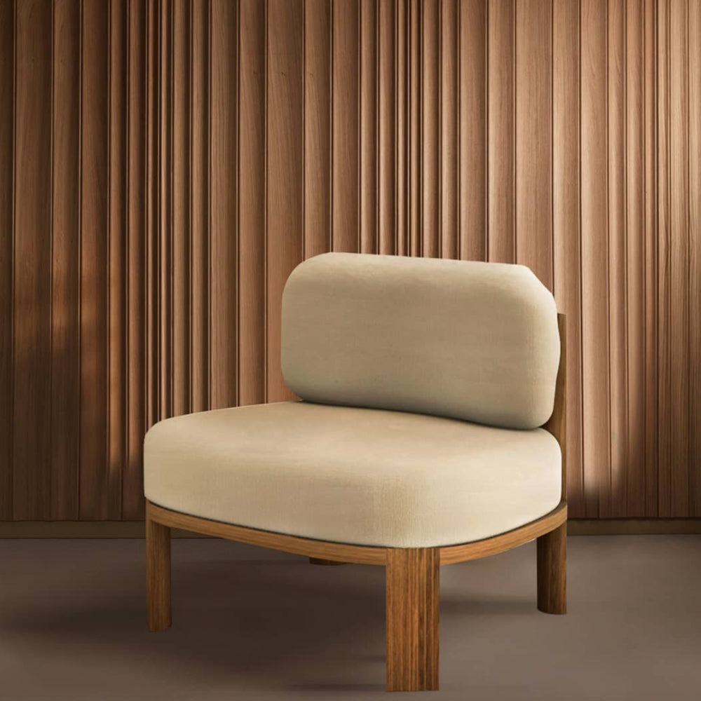The 111 Armchair is a sculptural and comfortable armchair: its name is a visual representation of the distinctive grooves gouged into the solid wood frame of the chair, a reminder of the craftsmanship involved in the manufacturing process. The upholstered seat and backrest are generously proportioned and very comfortable.