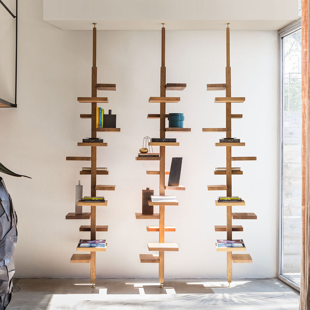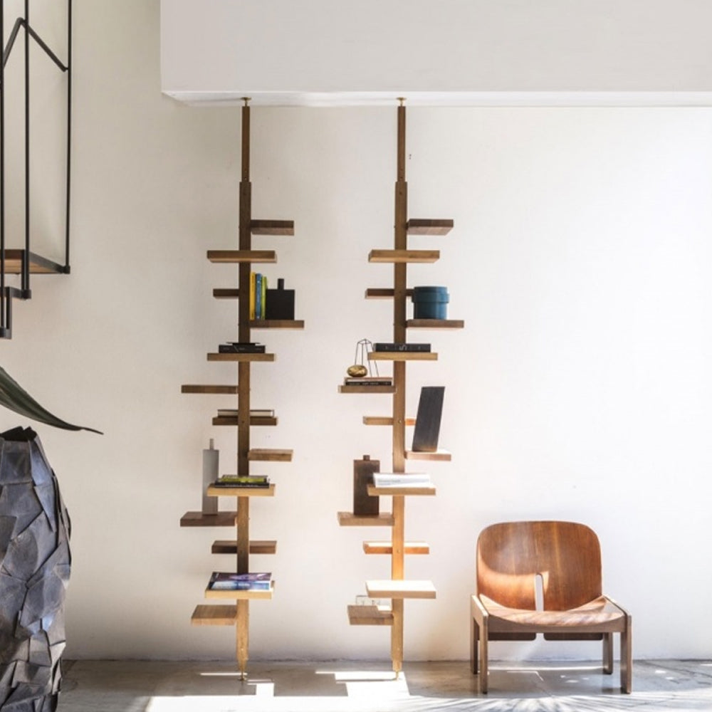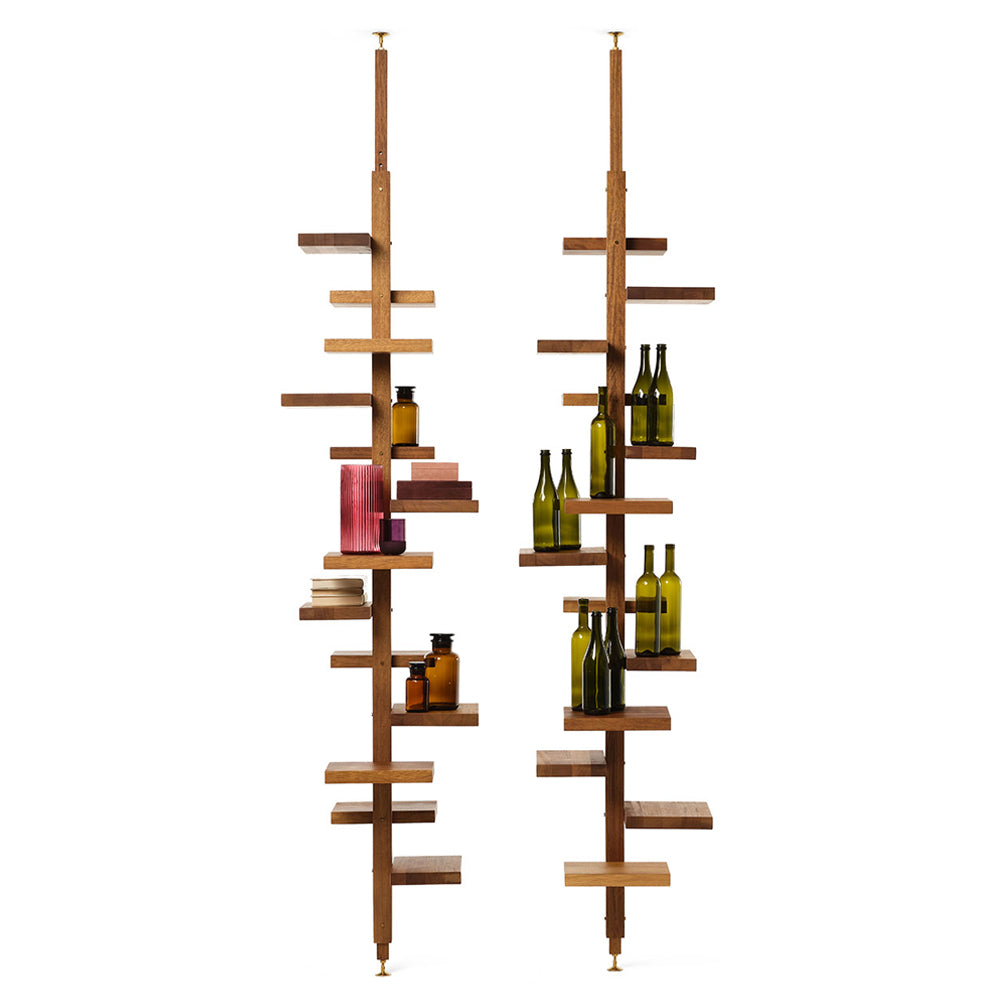 The Adelaide Floor Shelves - Wood is an elegant contemporary floor-to-ceiling shelving system, perfect for showcasing decorative objects. The design features 13 open shelves (or 9 shelves plus a TV slot) which spirals out from a central pole, seemingly in defiance of gravity. The Adelaide shelves come with end attachments in different sizes as well as an adjustable base in order to fit ceiling heights between 236 and 344 cm. Please select the correct height range from the Ceiling Height option above to ensure the correct attachments are included. The Adelaide Floor Shelves can be accessorised with metal bookends and small wooden container boxes as well as optional wall attachment brackets - please contact us for more information.