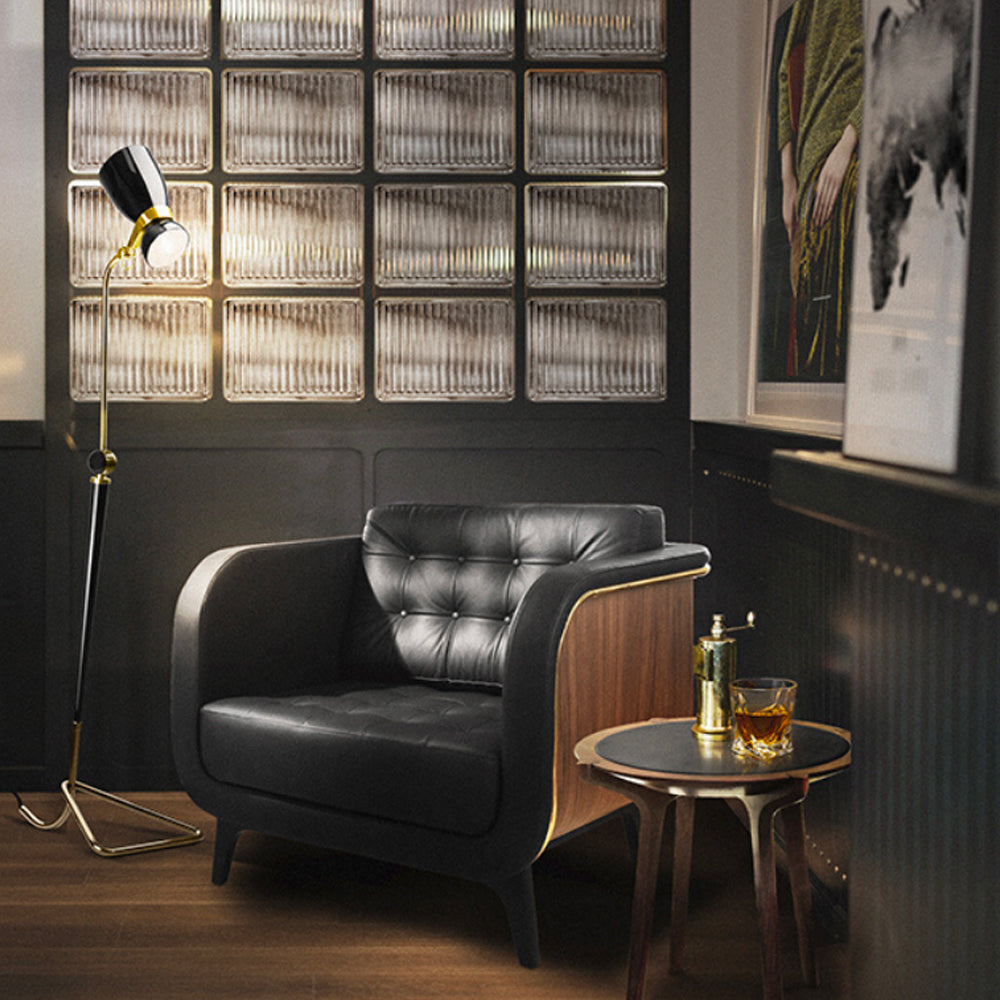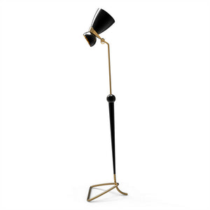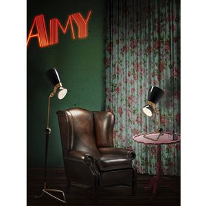The Amy Floor Lamp is inspired by the great jazz singer and songwriter: Amy Winehouse. With a glossy black lamp shade that bears a resemblance to Amy’s legendary hair and a small gold powder paint detail that recall us of her golden earring, the brass floor light suits the most demanding mid-century modern setting. Amy has a flexible lamp shade - perfect reading - and features a foot-switch on its cord.