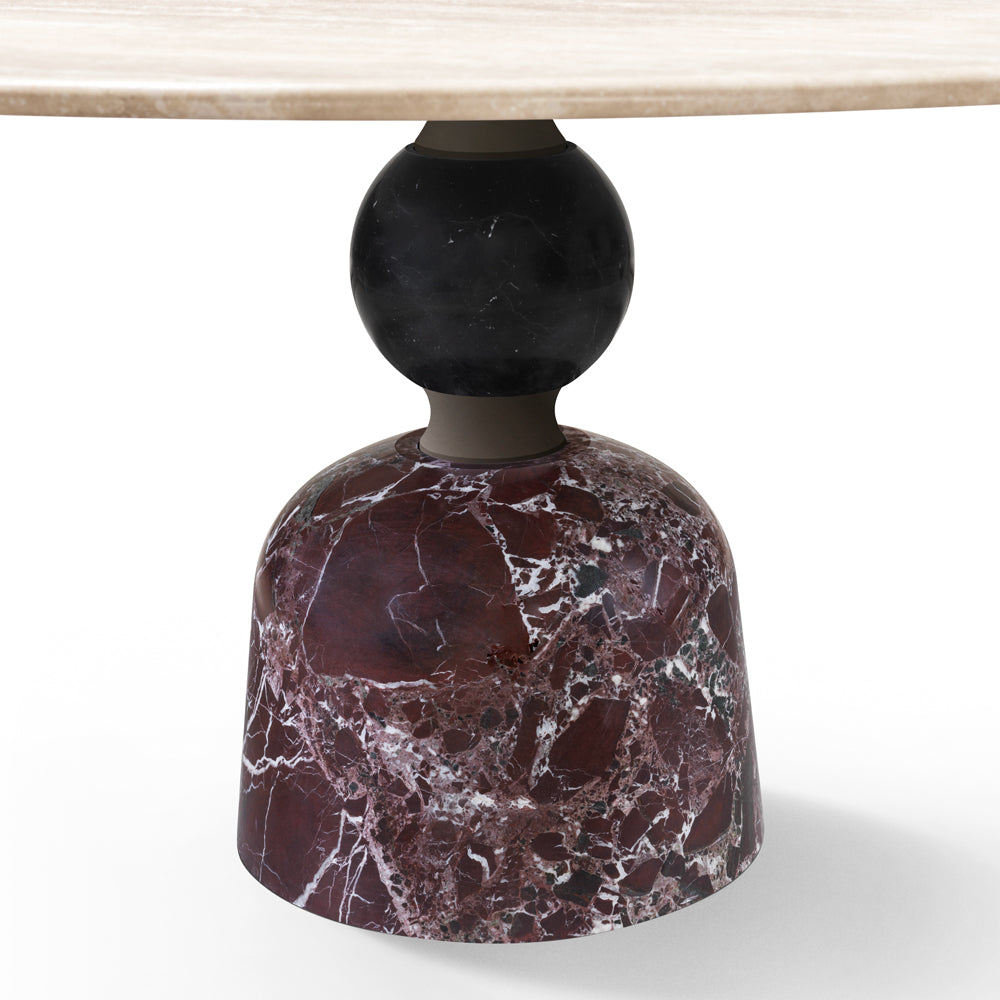 Marble: available in a vast array of finishes; available in all marble combinations; as pictured: base in Rosso Levanto, sphere in Black Marquina, top in Classic Travertine