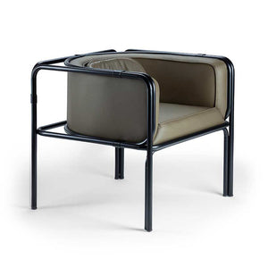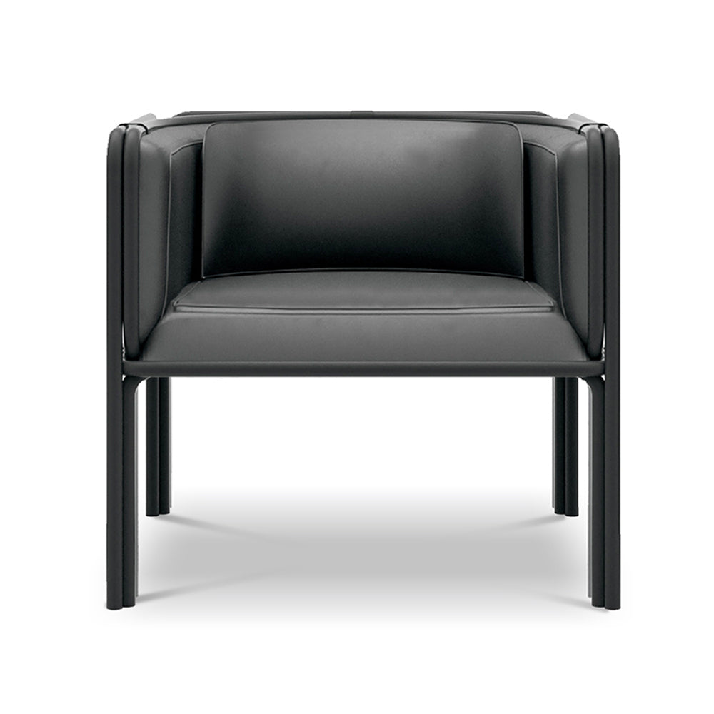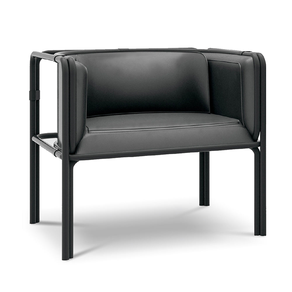 The AZ1 Armchair is an elegant armchair with a design featuring a sleek leather seat supported by a metal frame and armrests. The very square and geometrically perfect shape and combination of materials impart a great deal of character to the armchair. Alone or in pairs, covered in leather or fabric, the AZ1 Armchair is the perfect complement for any sofa.