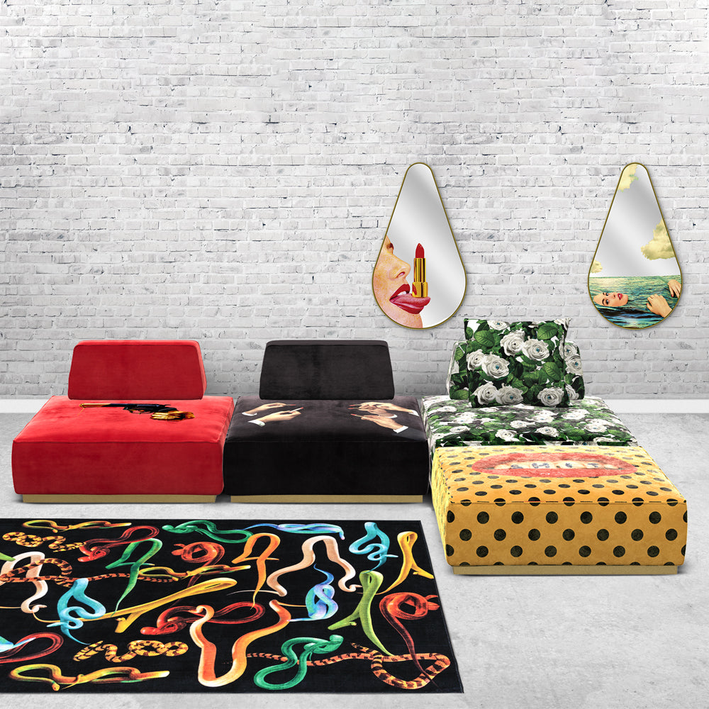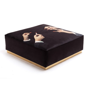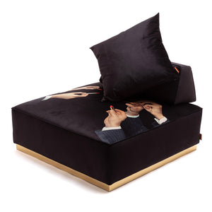 The Black Lipstick - Pouf is part of the very well established "Seletti Wears Toiletpaper" collection. The images for each product of this collection are selectively chosen by Maurizio Cattelan and Pierpaolo Ferrari; they are then printed onto the fabric using inkjet machinery designed specifically for large formats. A special heat treatment ensures the resistance of the print and the vividness of the colours. The poufs are available in a variety of quirky patterns. The poufs can be also complemented with a sturdy Backrest.