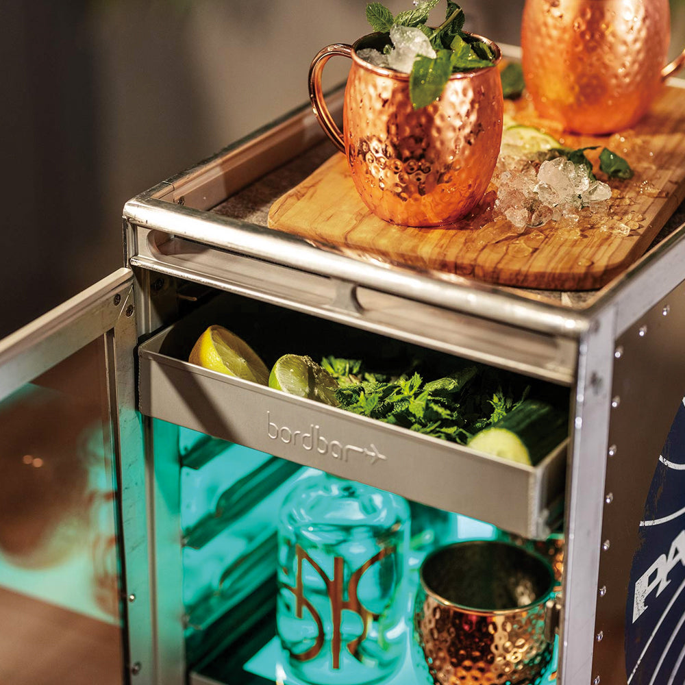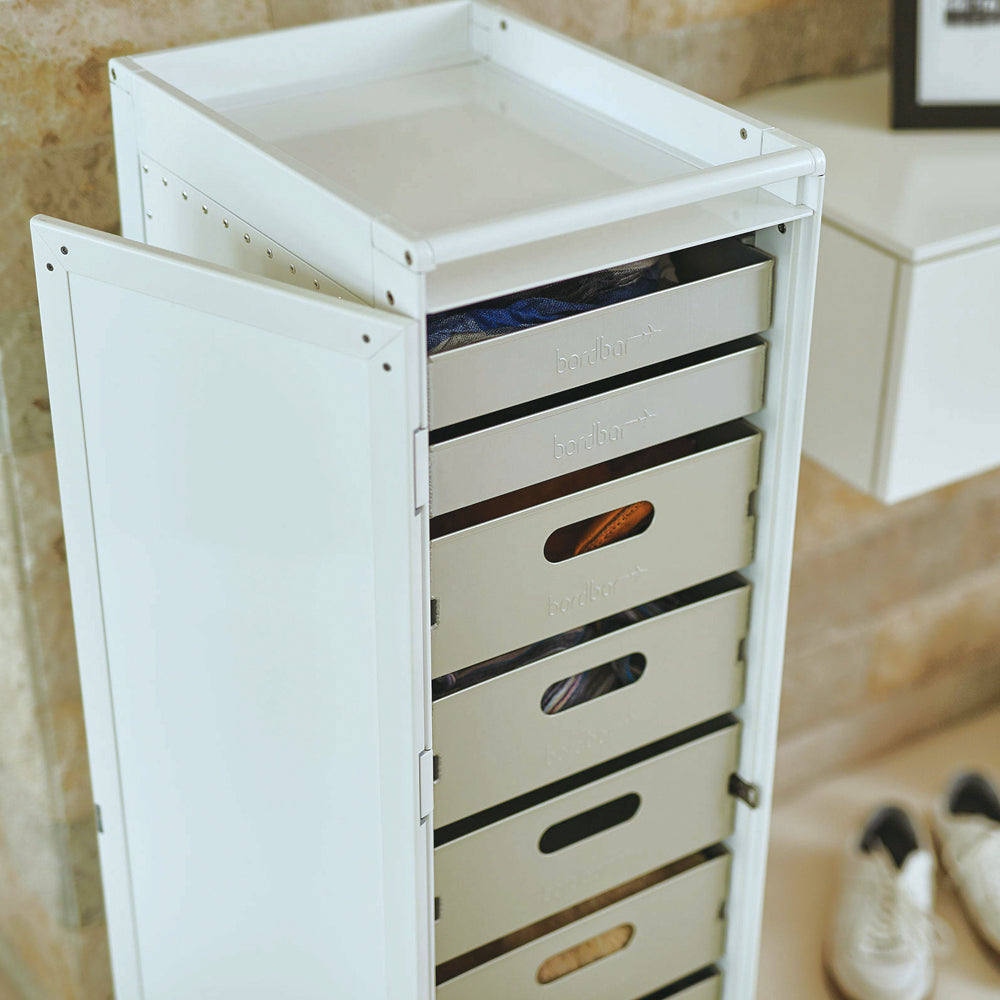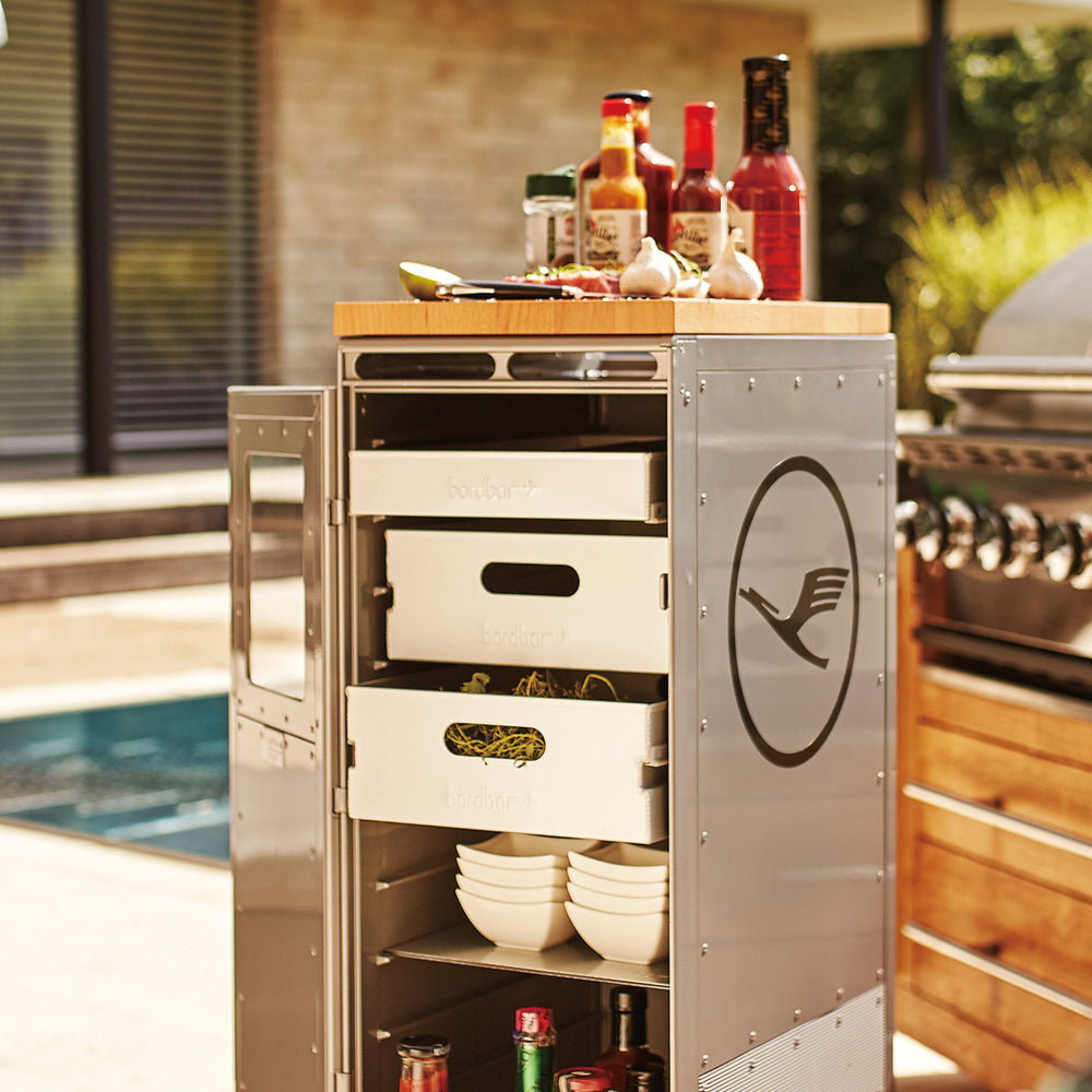 The Drawer is designed specifically for the Bordbar Trolley. Made in aluminium, the drawer retains the authentic "feel" of the trolleys used on board airliners. It is an essential accessory if the trolley is to be used for any storage purpose, whether as a mobile cabinet in the bathroom or as a mini work unit at the office.