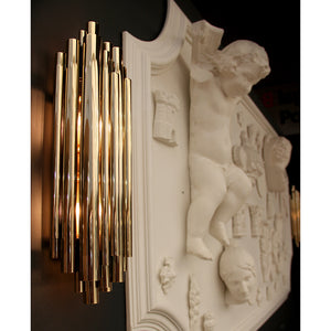 The Brubeck Wall Lights is a collection of lights inspired by one of the most prominent exponents of "Cool Jazz": Dave Brubeck. The lights are made in solid brass coated with a gold-plated finish. They can be customised in numerous other finishes. The Brubeck Wall Lights are available in two versions: Brubeck Wall and Brubeck XL Wall.