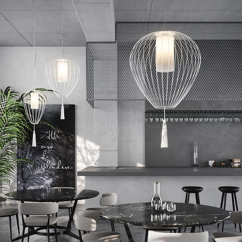 Lampshade: indoor versions - white linen; outdoor versions - white PMMA plastic