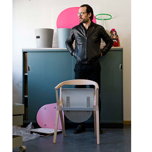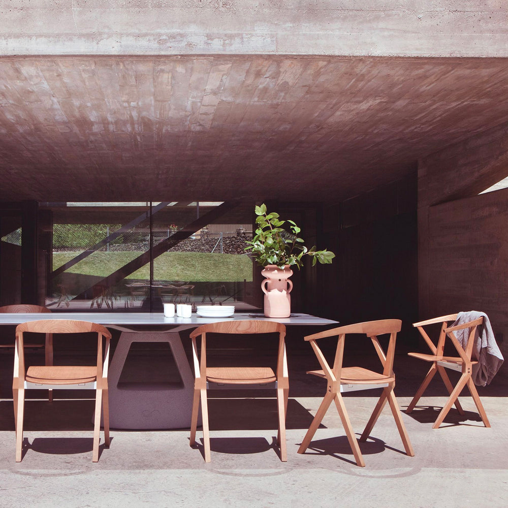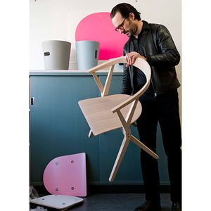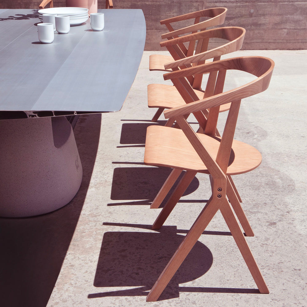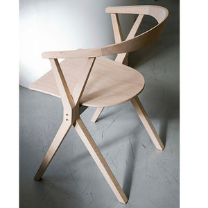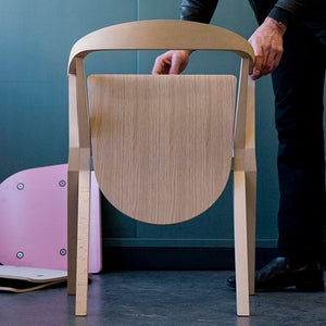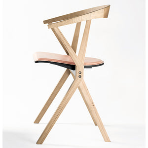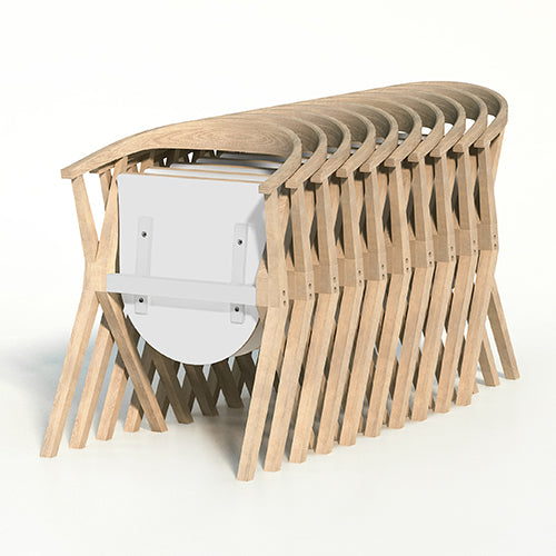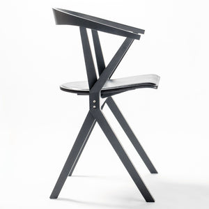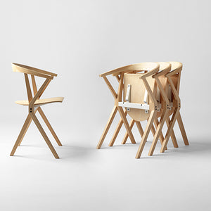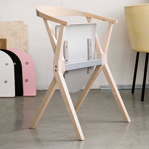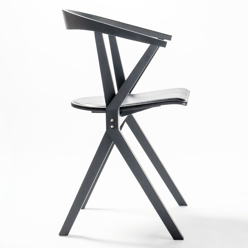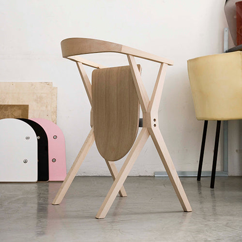 Chair B is a sleek and beautifully engineered folding chair designed to accompany the Table B. The elegantly minimalist shape of the chair belies the complex engineering involved to create the folding mechanism whilst ensuring the chair remains compact and stackable. The chair is available in two finishes: Natural or Black, with option for a padded seat upholstered in leather or fabric.