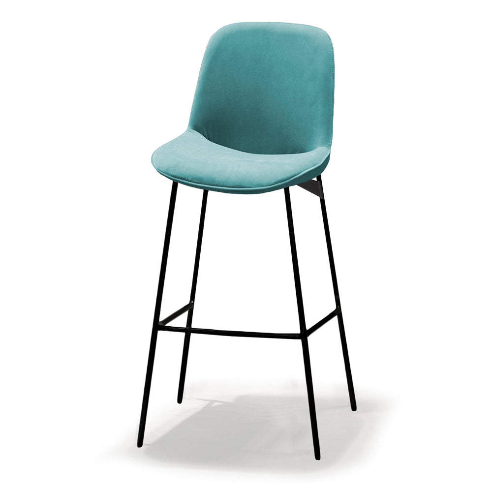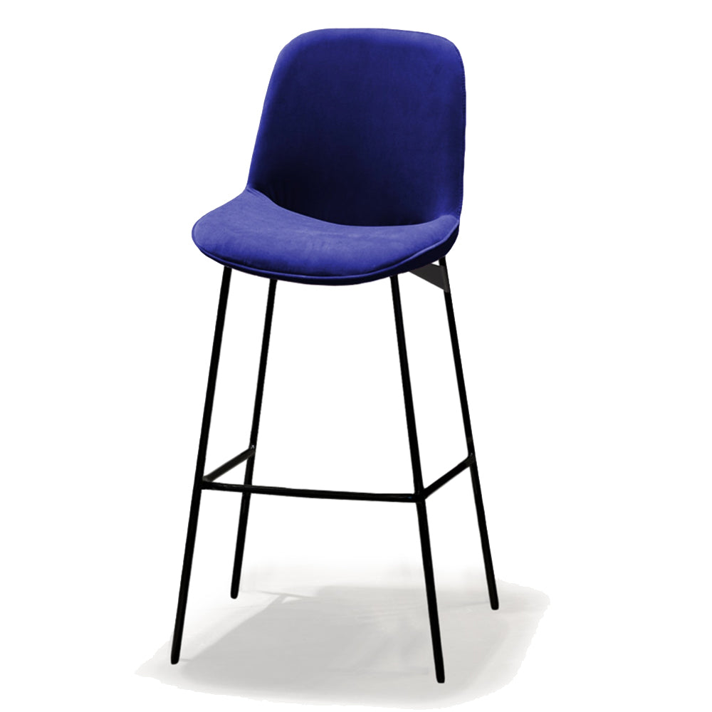 The Chiado Stool is a sleek and generous stool: its rounded seat and backrest are fully upholstered for comfort, supported effortlessly by an industrial style metal base. The stool is available in both bar and counter heights (H 108 or 105 cm).