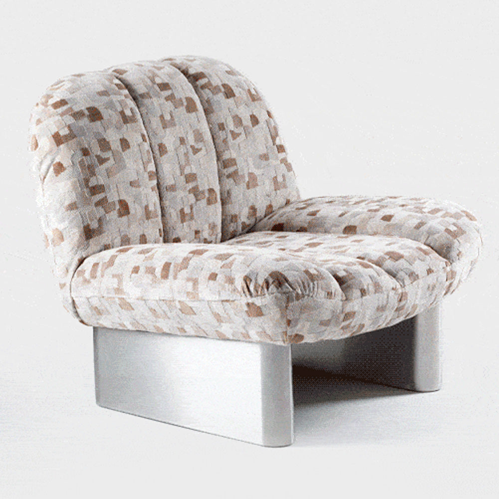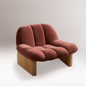 Inspired by the organic modernism of the 1970s, the Colin Armchair is a masterpiece of comfort and elegance. Its sculptural design features rounded solid wood legs topped by a seat entirely made in softly padded upholstery.