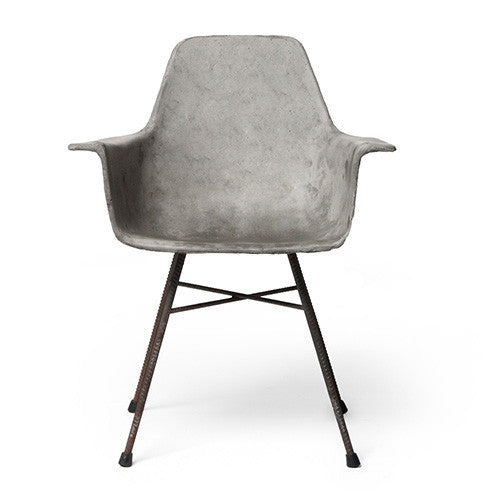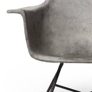 The Hauteville Concrete Armchair - High is part of a collection which draws inspiration from iconic mid-century design with a modern twist. Naked concrete is paired with rebar metal legs, evoking a rough, industrial vibe which provides a bold contrast to the smooth, modern shape of the seat. Despite the use of unconventional materials, the collection offers an incredibly ergonomic and comfortable seat, while ultra-fine sanding gives it a smooth finish.
