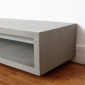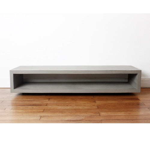 Concrete Monobloc TV Bench With Metal Legs is sleek and minimal backdrop storage unit and coffee table, perfect for those who want to create an industrial look or are looking for a neutral yet special storage solution. The Concrete Monobloc Coffee Table is available in 3 versions: With Metal Legs, With Wheels or in a TV Bench With Metal Legs version.
