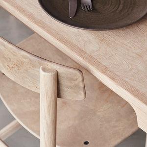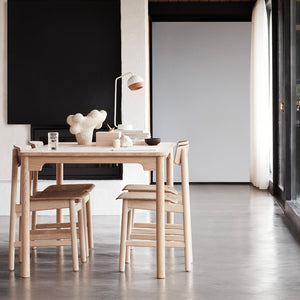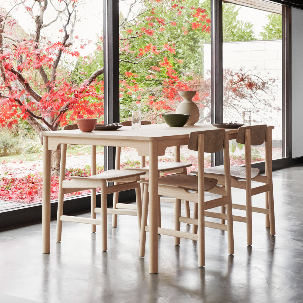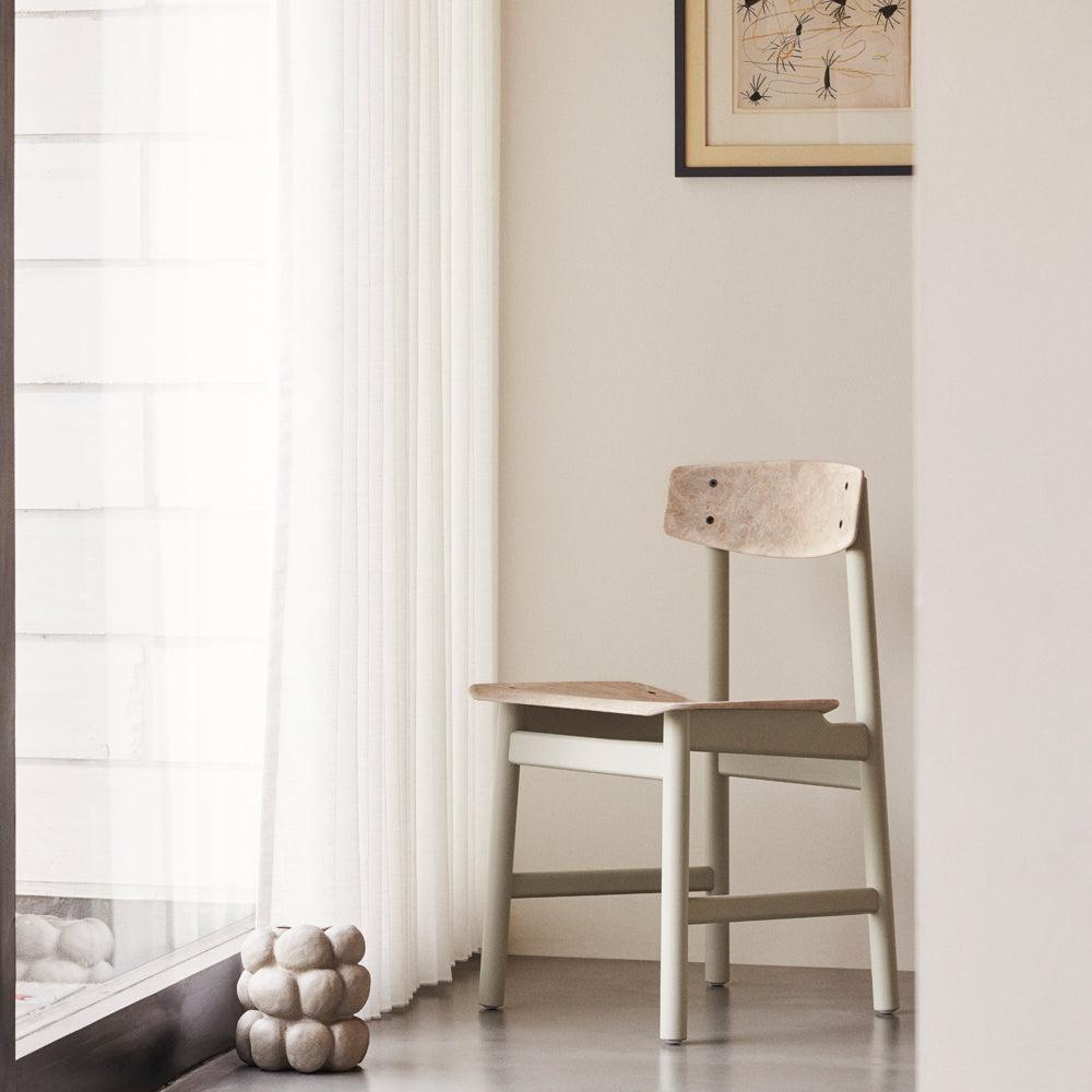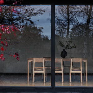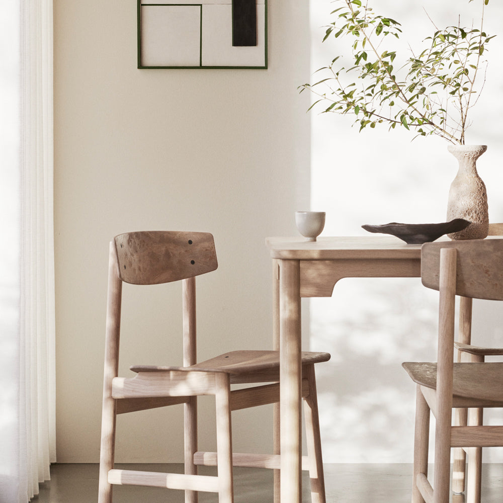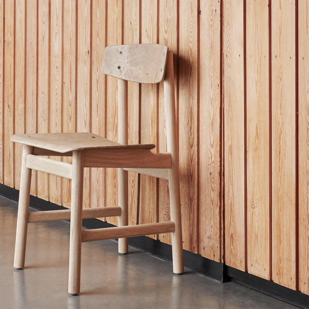 The Conscious Chair was originally designed in 1958 by the renowned Danish furniture designers and architects Børge Mogensen and Esben Klint. This new version of the chair is made of FSC wood and Mater Circular materials, where an innovative technology allows Mater to up-cycle fibre-based waste materials with up-cycled plastic waste.