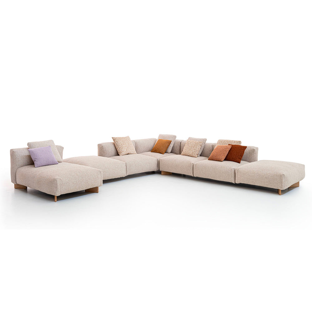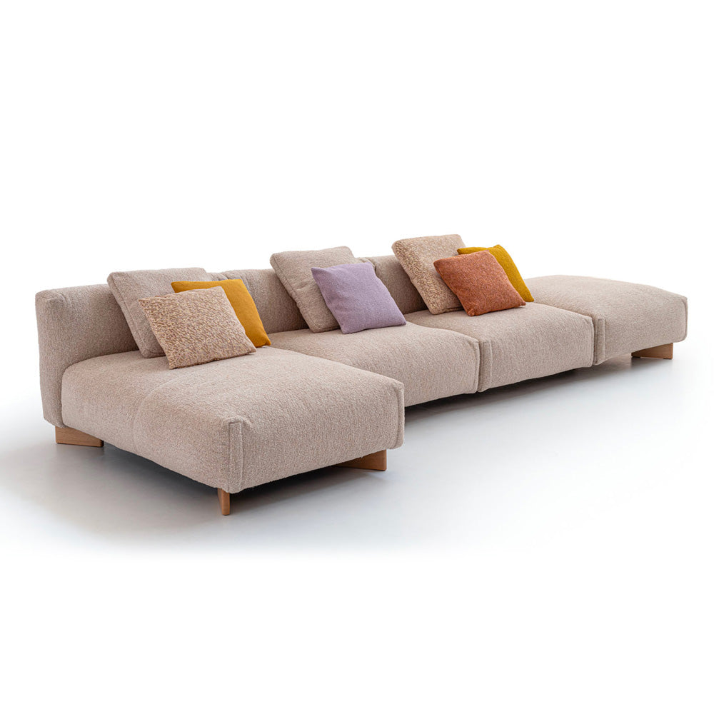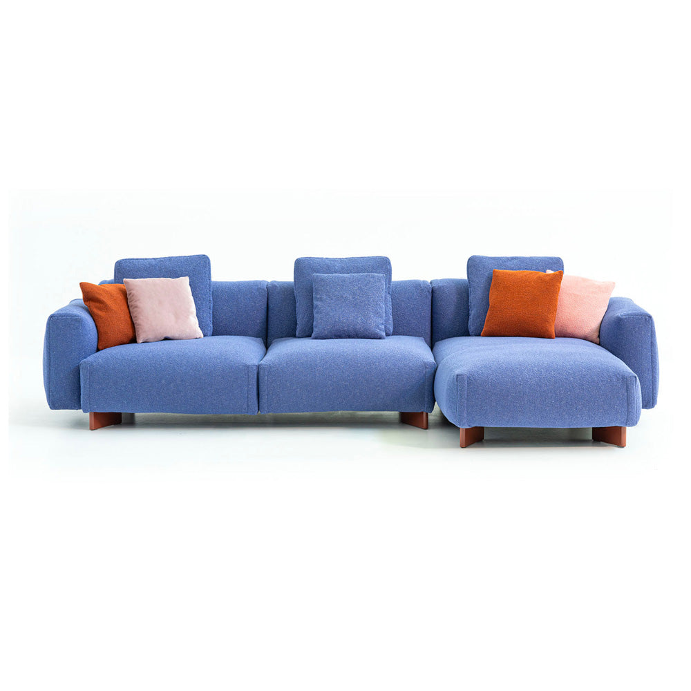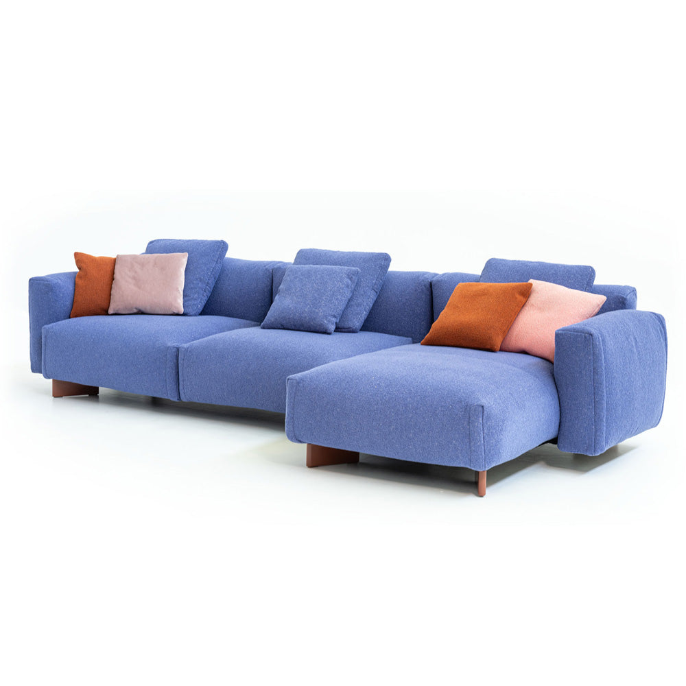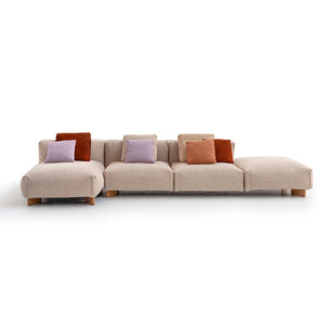 The Cuadra-Soft Sofa is designed to combine comfort with fluidity. Its generous shape and soft upholstery offers ample comfort, whilst the subtle beaded seams outline the fluid contours of the seats and armrests. The diagonally inclined wooden feet creates a sense of lightness and grace with completes the design.