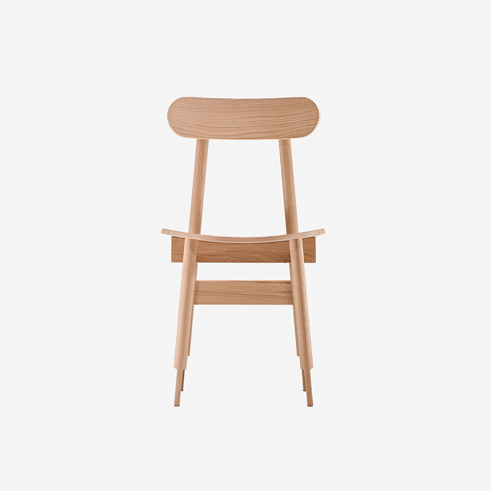 The Diner Chair has a sleek and attractive design, combining traditional and contemporary design styles. It is also very comfortable, thanks to its slightly curvy seat and backrest. It is available in various types of woods, wood finishes, all in wood or upholstered. The Diner Chair is available with or without armrests.