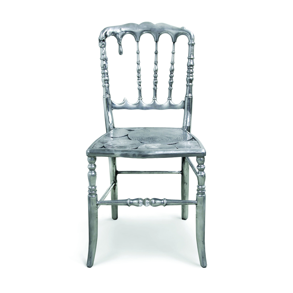 The Emporium Collection of chairs is inspired by the surrealist movement. The shape of the chair might be distinctly classic, but quirky details such as the "broken" seat back spindle and finish which resembles melted wax bring the chair right up to date as well as showcasing the craftsmanship behind its construction.