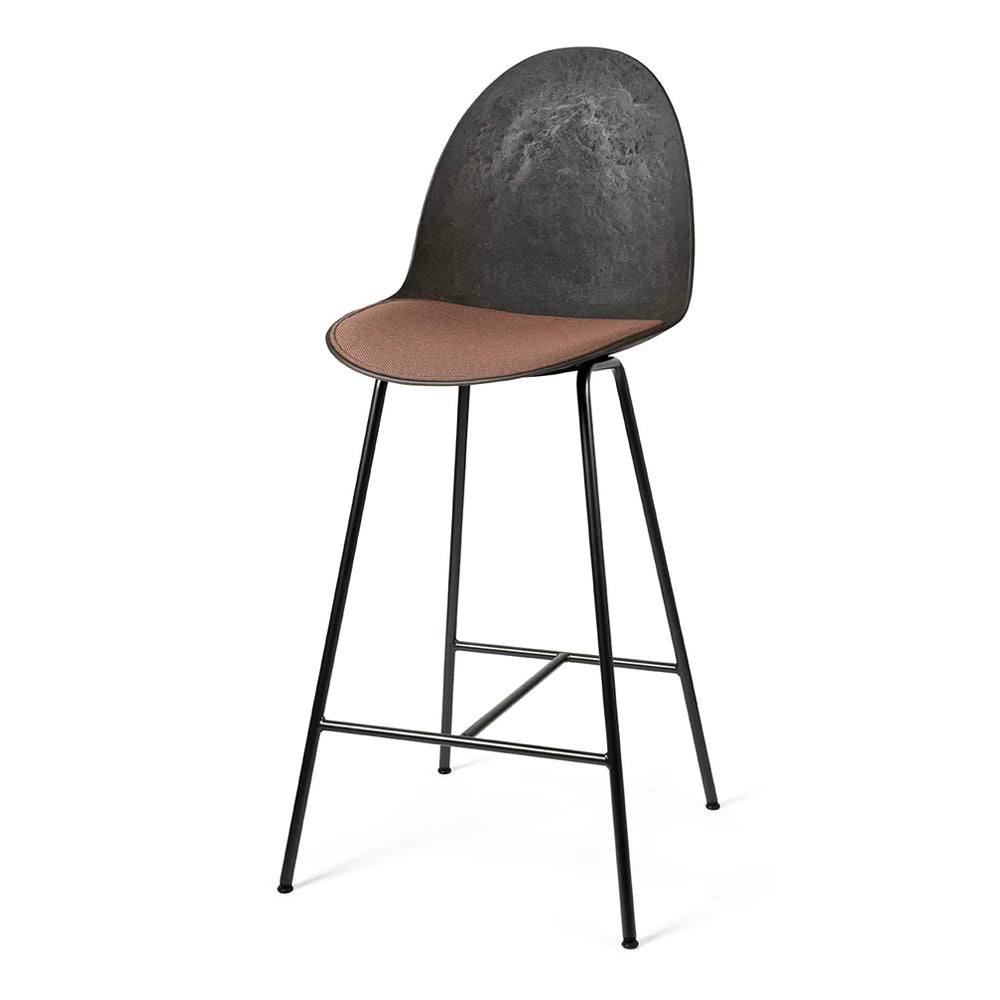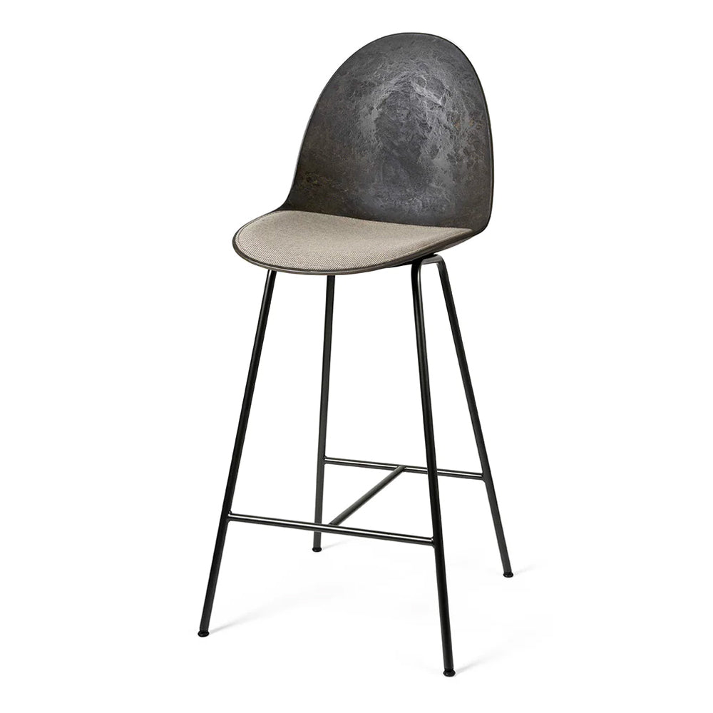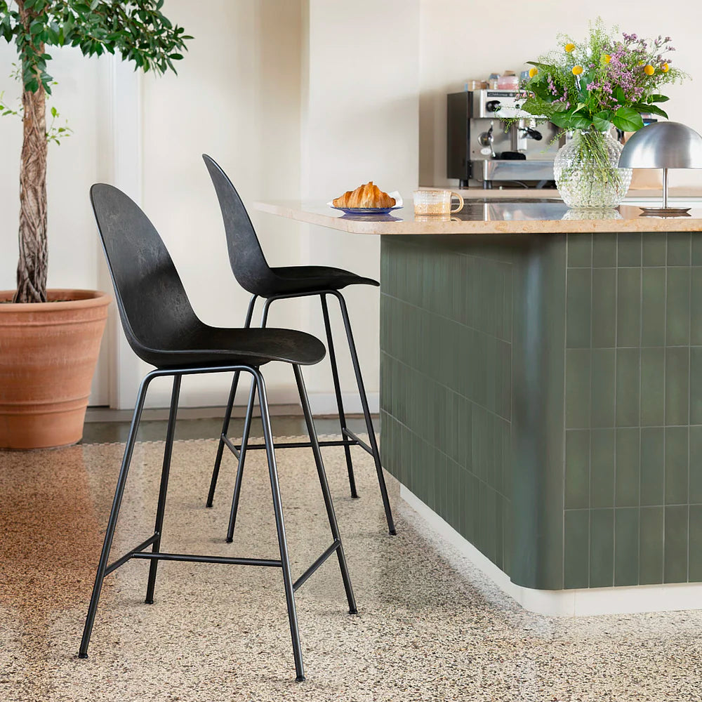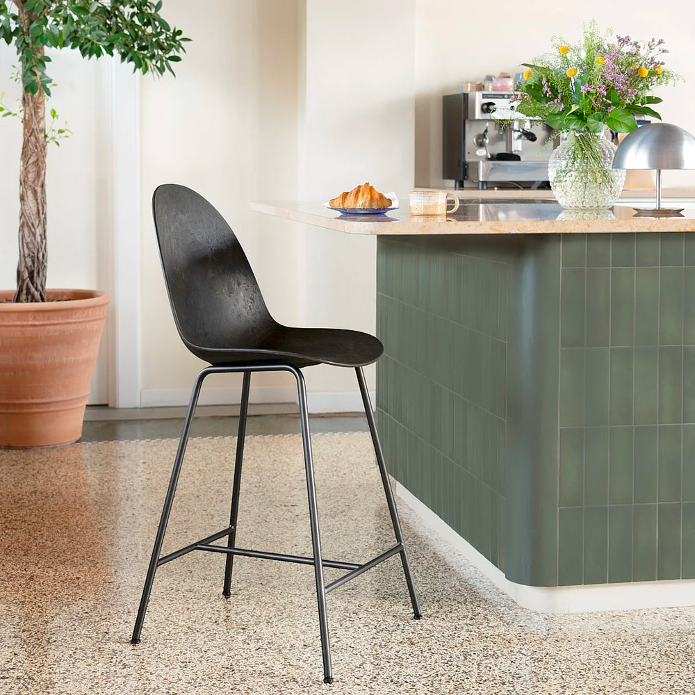 The Eternity High Bar Stool is made with a frame of 20% recycled steel and a seat and back in Matek®, an innovative material made with coffee shell or wood waste mixed with post consumer e-waste. The Eternity High Bar Stool is very comfortable with industrial and sculptural features. The stool is designed to be disassembled at the end of its life, allowing each component in its purest form to be recycled.