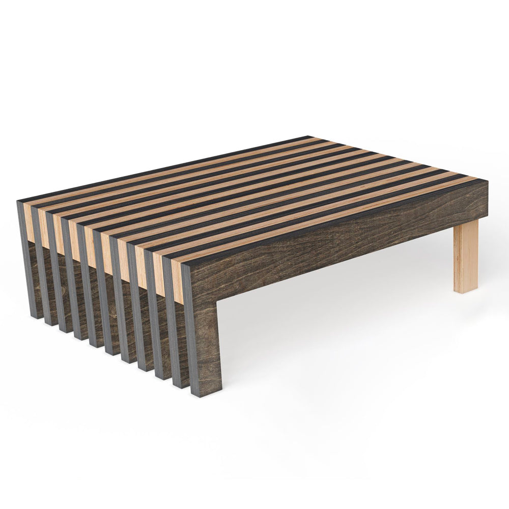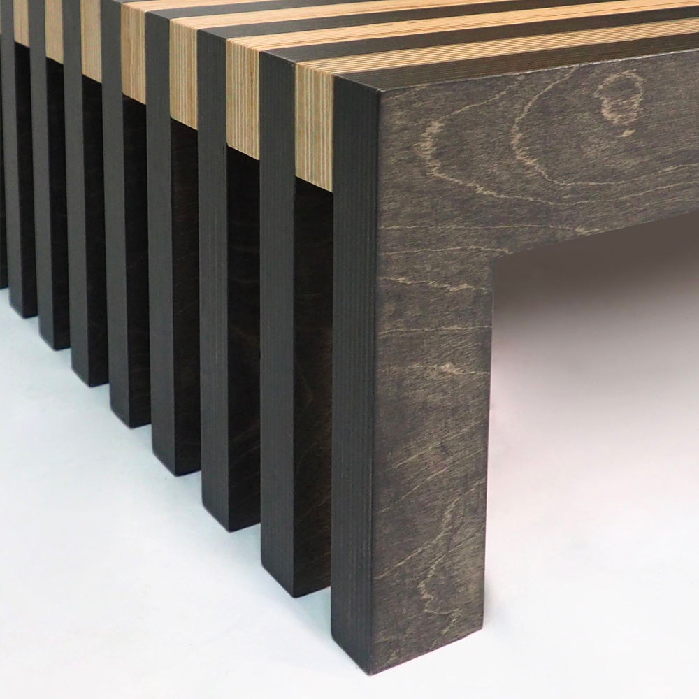 Structure: birch plywood, with a combination of natural and dark grey tainted, matte finishes