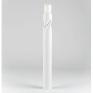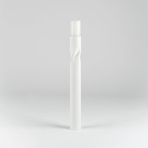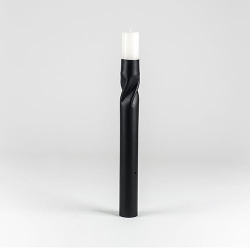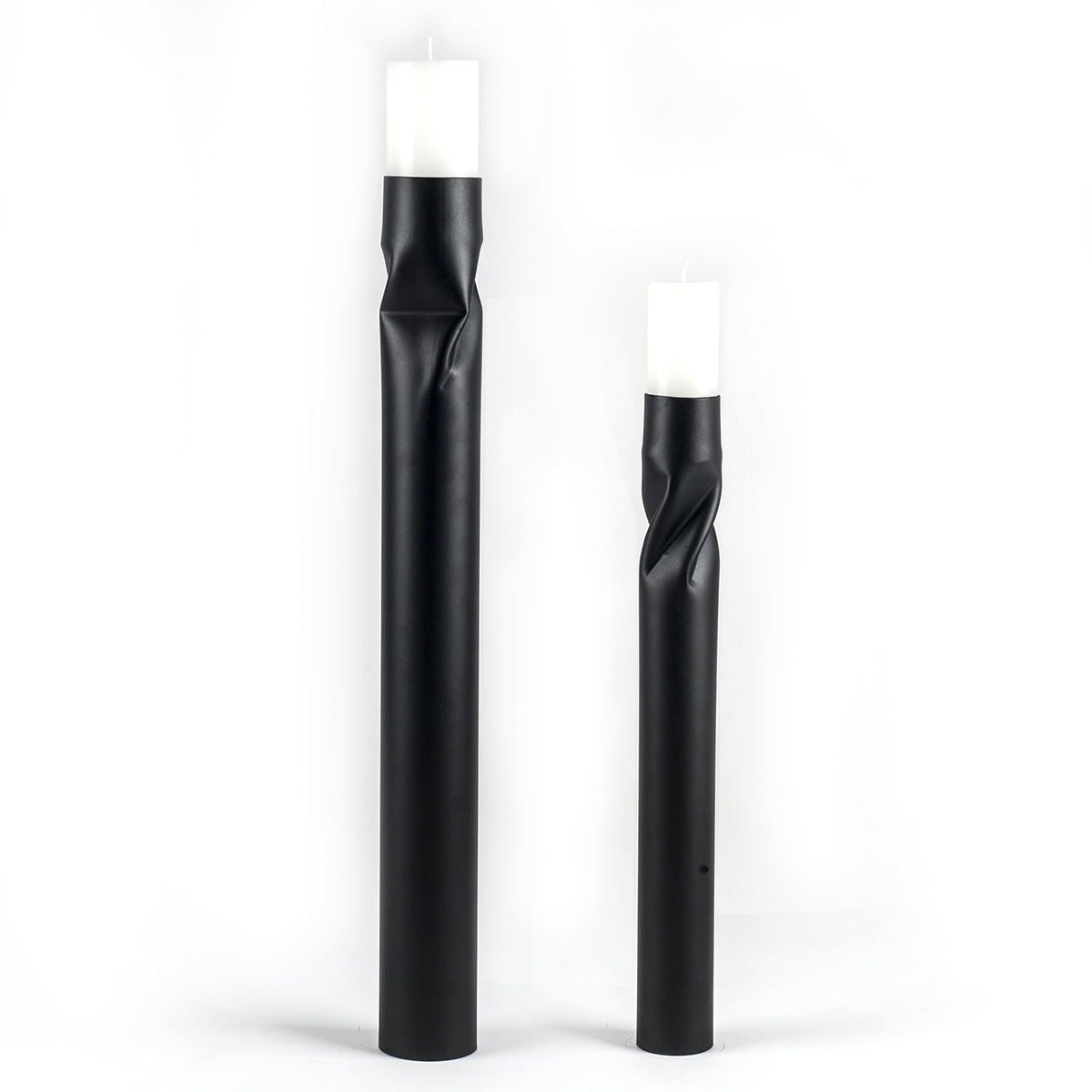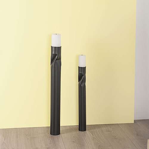 The Flip Candleholder is a tubular candleholder which recalls the shape of ancient medieval torches. Flip is hand-wrought from a metal tube, which means that every Flip is a completely unique piece. The Flip Candleholder is available in five finishes: white, black, green, yellow or azur blue and in two sizes: large or small.