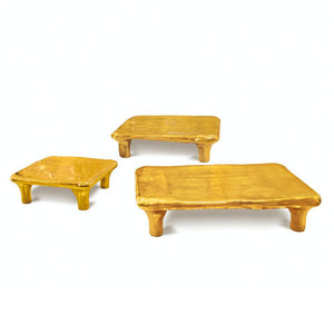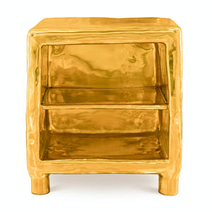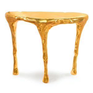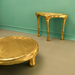 The Fools' Gold Tables is a collection of quirky and luxurious tables. The designs are inspired by the story of 16th century English sailors who mistakenly thought they had discovered gold when they reached Canada. The tables are made entirely in brass with a hand sculpted finish which looks as if they were freshly cast from molten gold.
