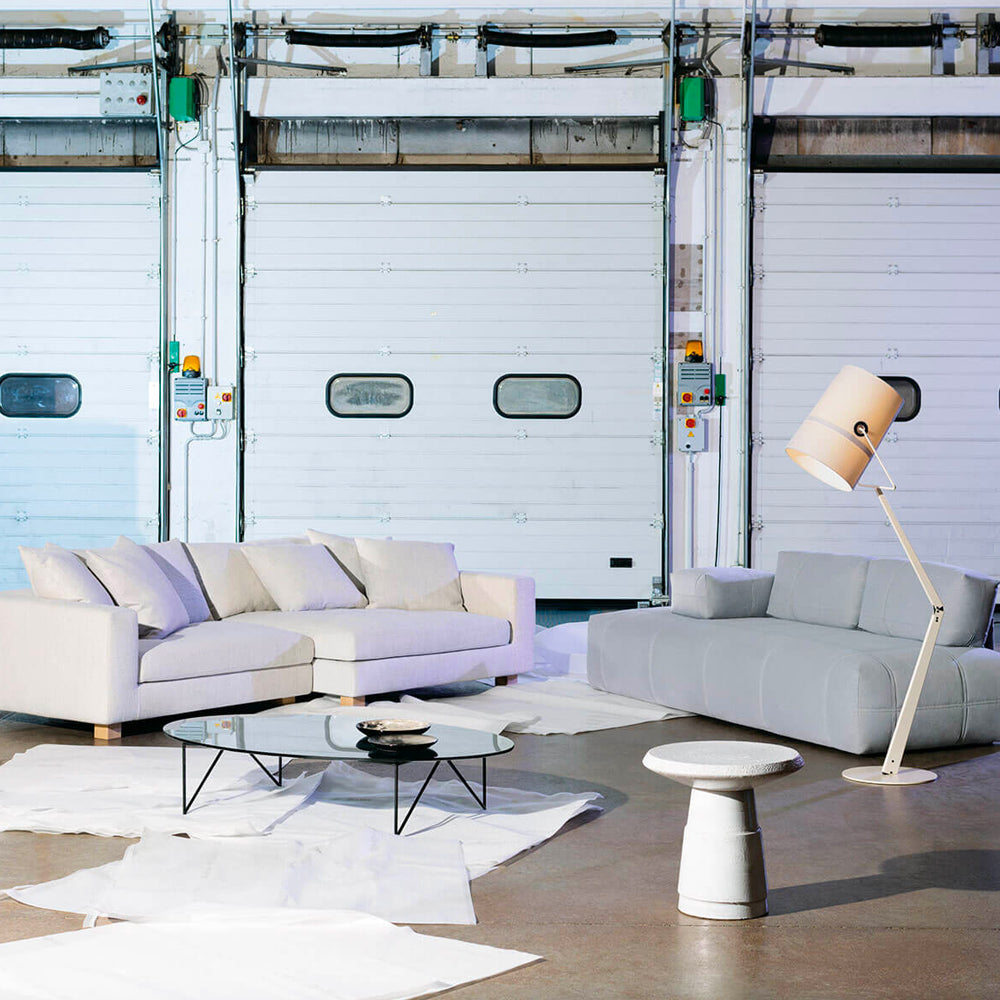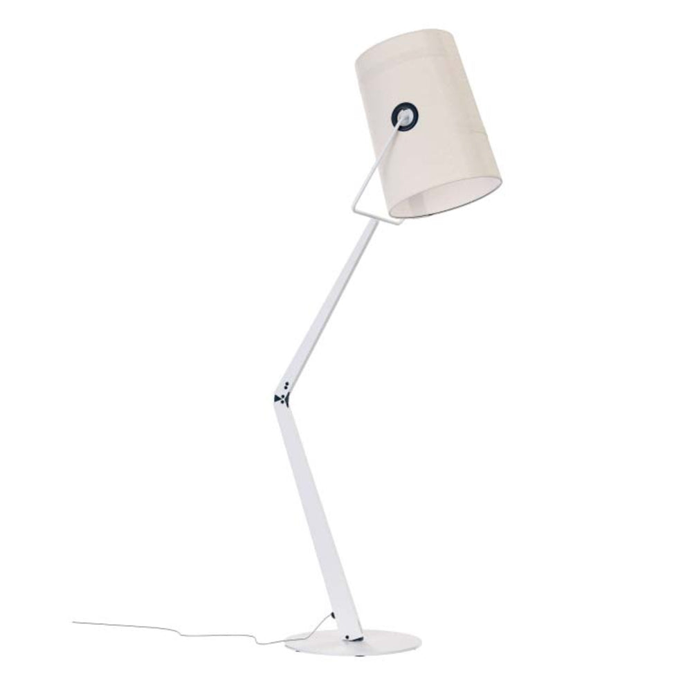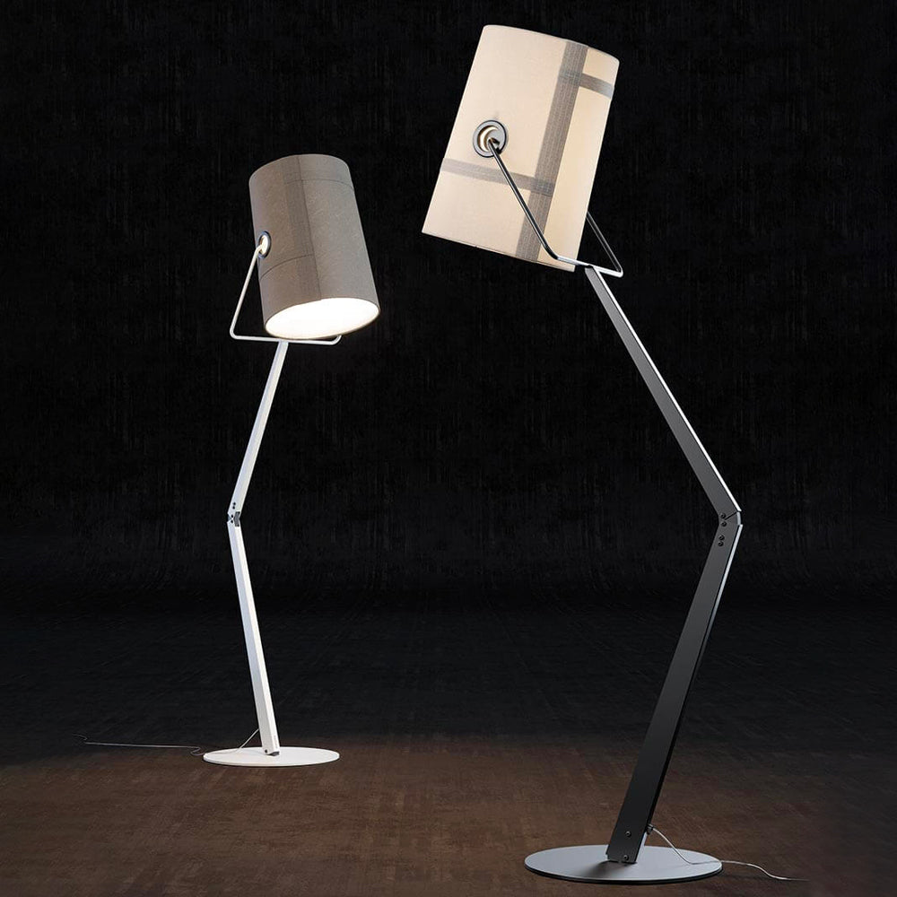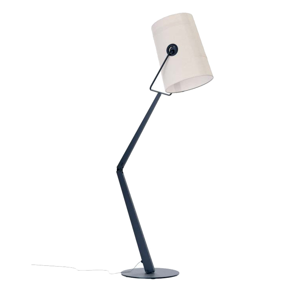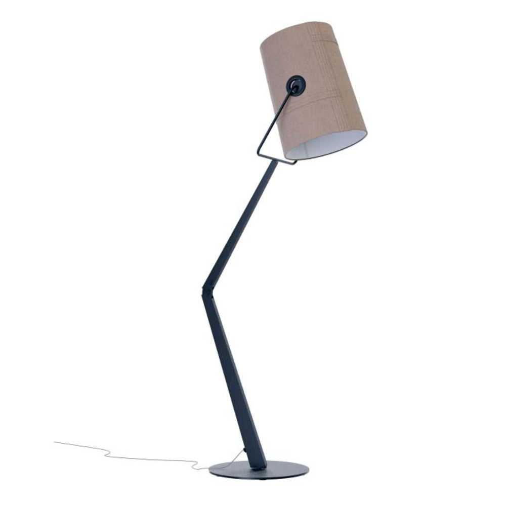 The Fork Floor Light is inspired by lamps used inside camping tents. The light inside the diffuser highlights the patchwork structure of the shade, which comes with visible stitching just like a pair of jeans. The linen cotton diffuser, available in ivory and grey, creates a warm and soft lighting effect. The shade and the structure of the lamp (at the base) can both be rotated 360°, which allows the light beam to be directed at will.
