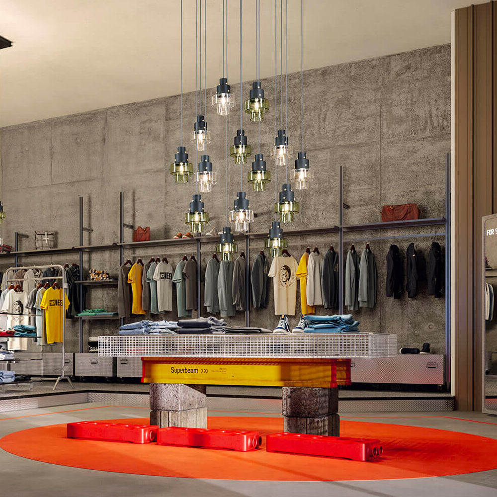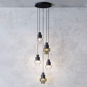 The Gask suspension light looks like it came out of a 1920s emporium or a warehouse for work tools, but the design also recalls ziggurats, the sacred terraced pyramids of ancient Mesopotamia. The Gask suspension light can be installed in a cluster, with endless customisation possibilities in terms of number, height and canopy options. Please contact us for more information.