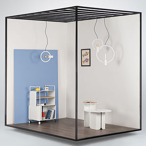 The Gemina Vertical Suspension Light is a lamp which provides both a perfect balance and a perfect, simple round shape. The Gemina Vertical Suspension Light is available in two sizes (large or small) and in four finishes: white, azure blue, yellow or grey. Gemina is also available in 2 versions: Horizontal or Vertical.