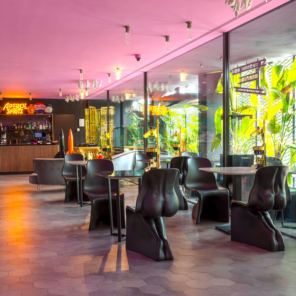 Her is an iconic chair which takes on the form of a naked woman kneeling, its detailed shape achieved by a 3D scan of a plaster sculpture. The Her chair is available in multiple colours in both matte and glossy finishes and can be used indoors and outdoors. This highly distinctive chair makes a strong design statement and works well as an occasional chair or around a dining table, both at home or in public spaces.