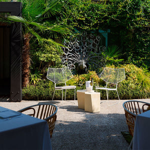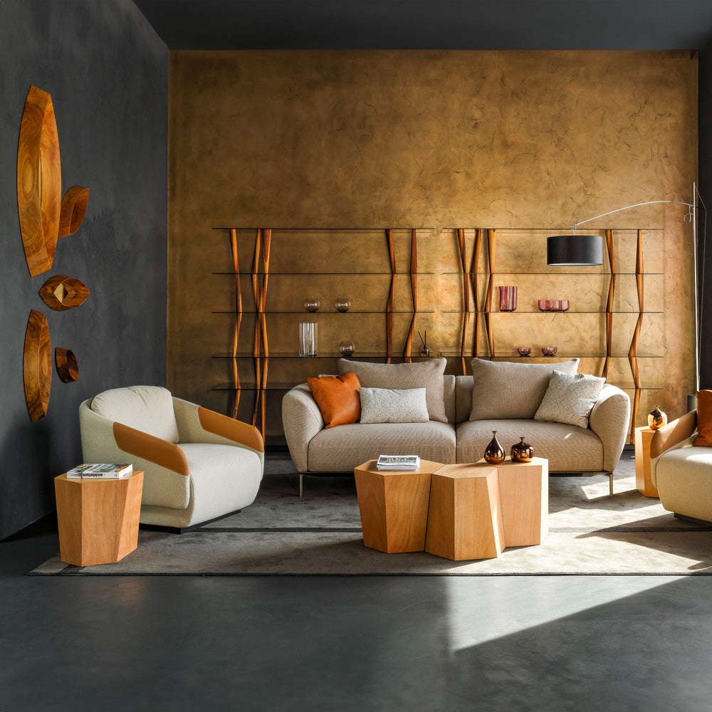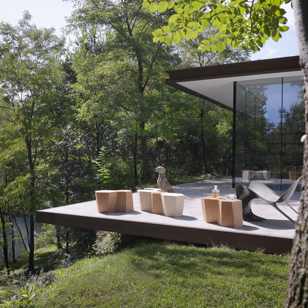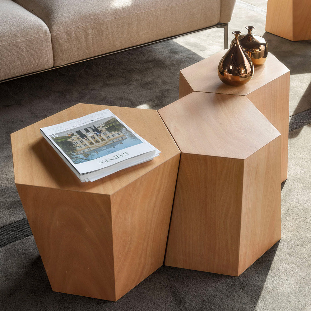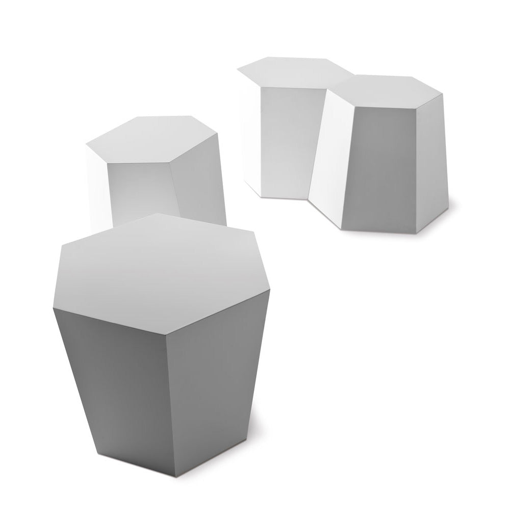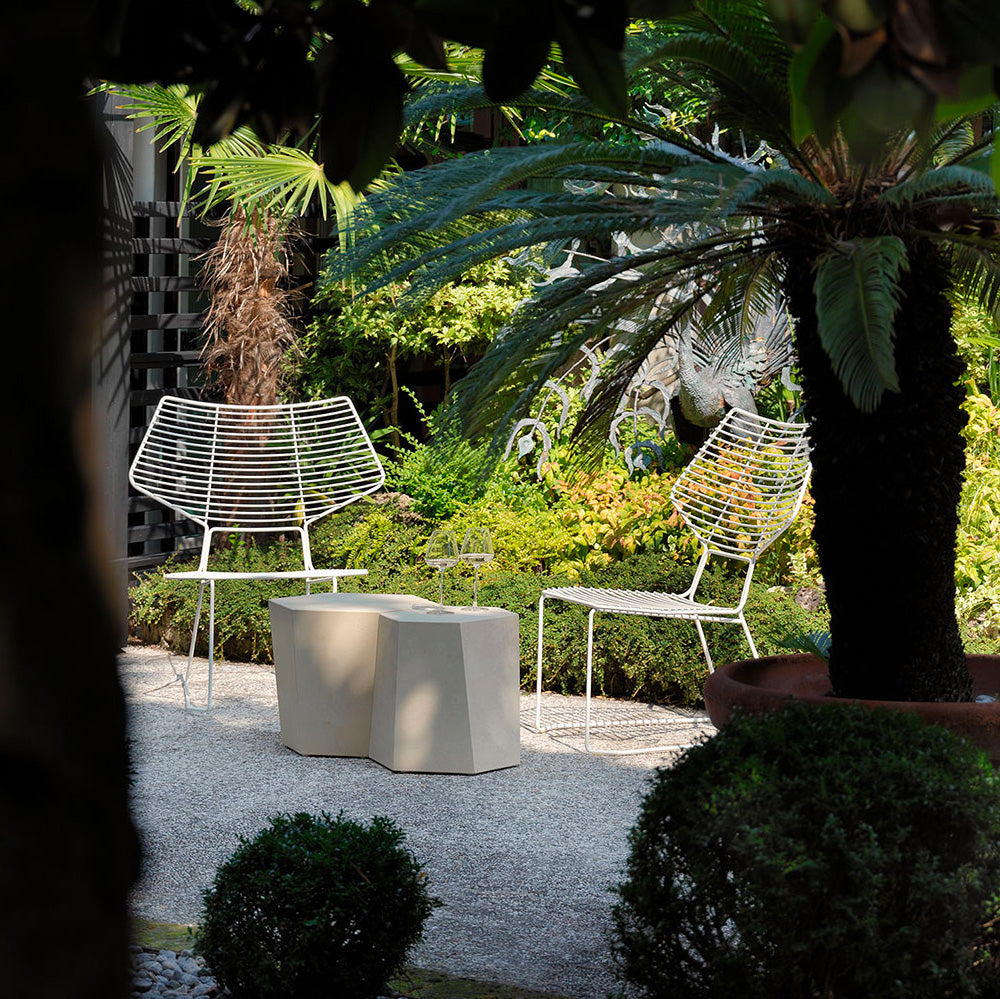 Hexagon can be used as a standalone side table or stool, but it really comes to life when it is used in a group. Hexagon comes in two sizes and the units can be placed upside down. In addition, Hexagon is available in Lecce stone, a limestone typical of the Puglia region in Italy which can withstand most severe weather conditions; or in Okoumè, a wood native to tropical West Africa which can withstand moisture and light rain (although not for prolonged periods). Hexagon units of different sizes, orientation and finishes can be placed together, creating beautiful compositions that resemble natural rock formations.
