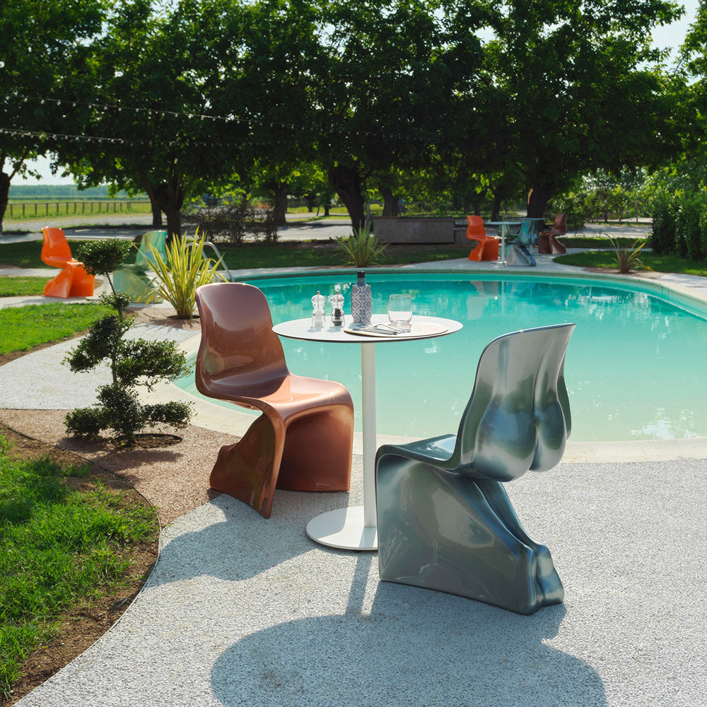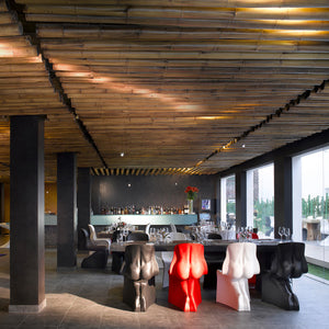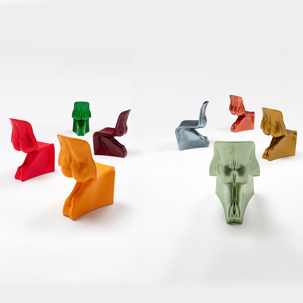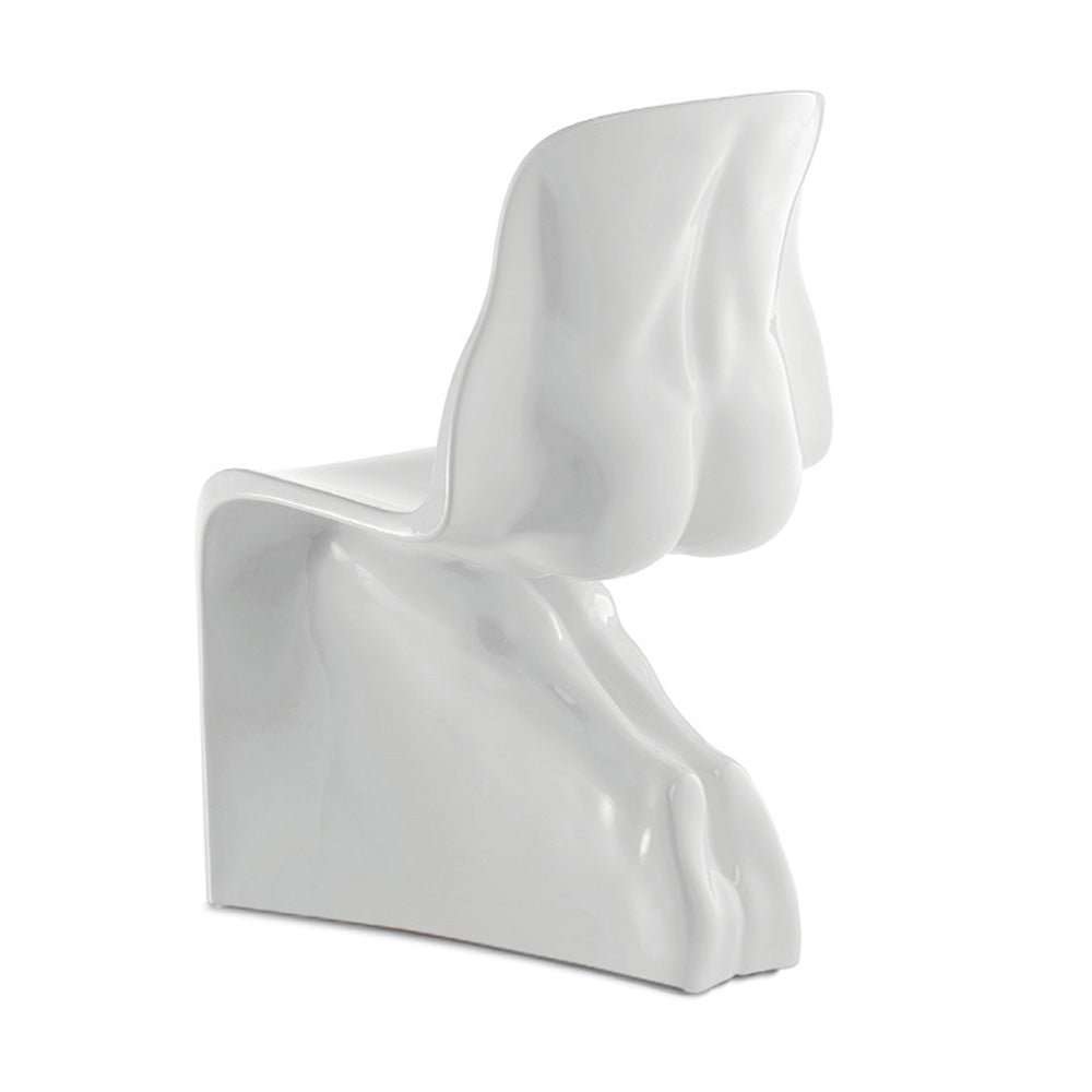 Him is an iconic chair which takes on the form of a naked man kneeling, its detailed shape achieved by a 3D scan of a plaster sculpture. The Him chair is available in multiple colours in both matte and glossy finishes and can be used indoors and outdoors. This highly distinctive chair makes a strong design statement and works well as an occasional chair or around a dining table, both at home or in public spaces.