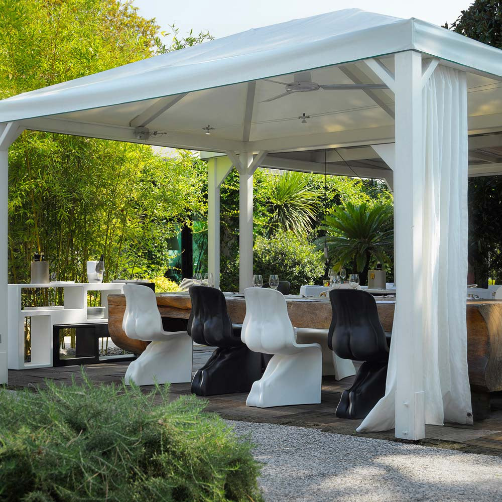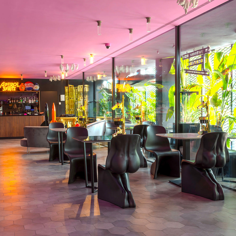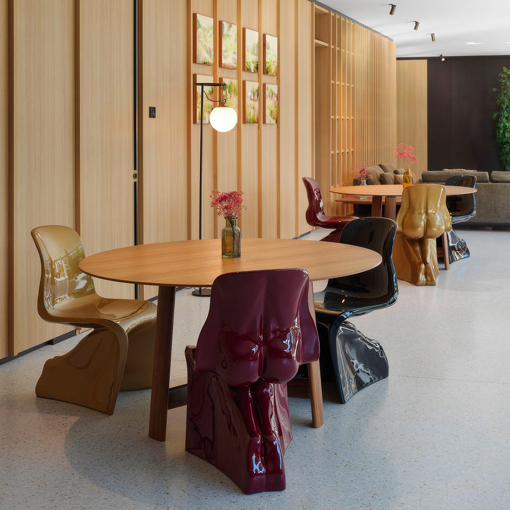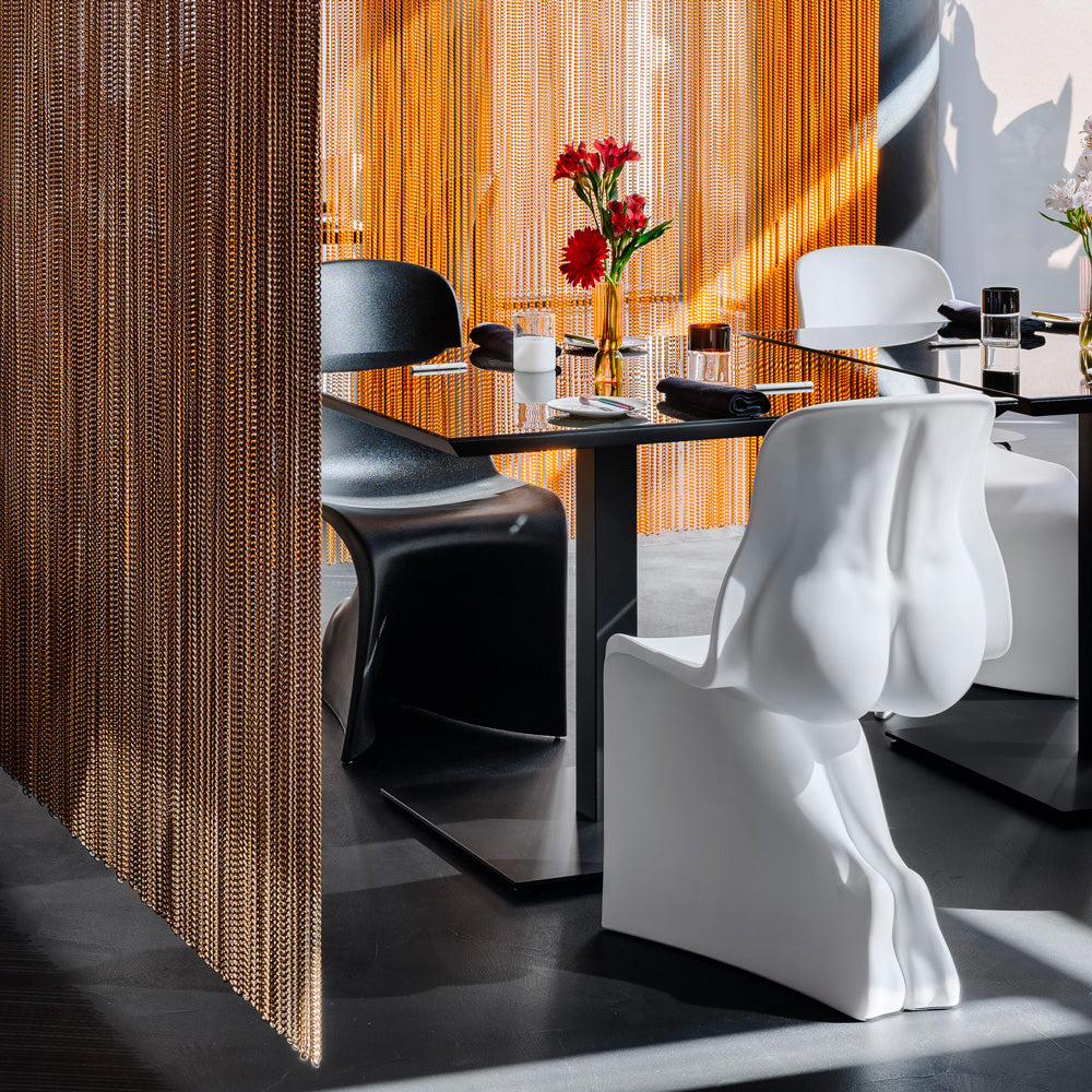 Him is an iconic chair which takes on the form of a naked man kneeling, its detailed shape achieved by a 3D scan of a plaster sculpture. The Him chair is available in multiple colours in both matte and glossy finishes and can be used indoors and outdoors. This highly distinctive chair makes a strong design statement and works well as an occasional chair or around a dining table, both at home or in public spaces.