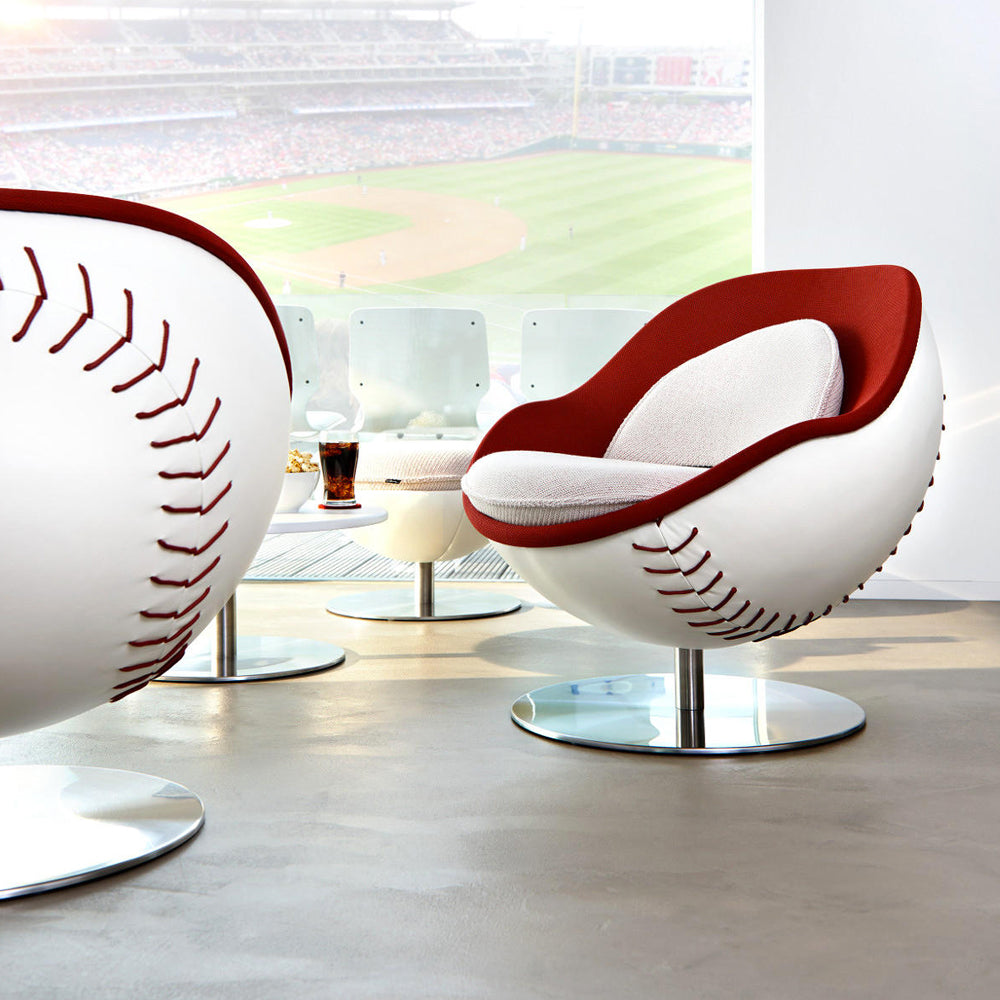 The Homerun Baseball Lounge Chair is a quirky and stylish baseball shaped lounge chair, a unique design which evokes the spirit of sportsmanship superbly. The lounge chair appeals to sports connoisseurs and design aficionados alike and it looks great as a statement piece in kitchens, bars, sports clubs or games rooms.