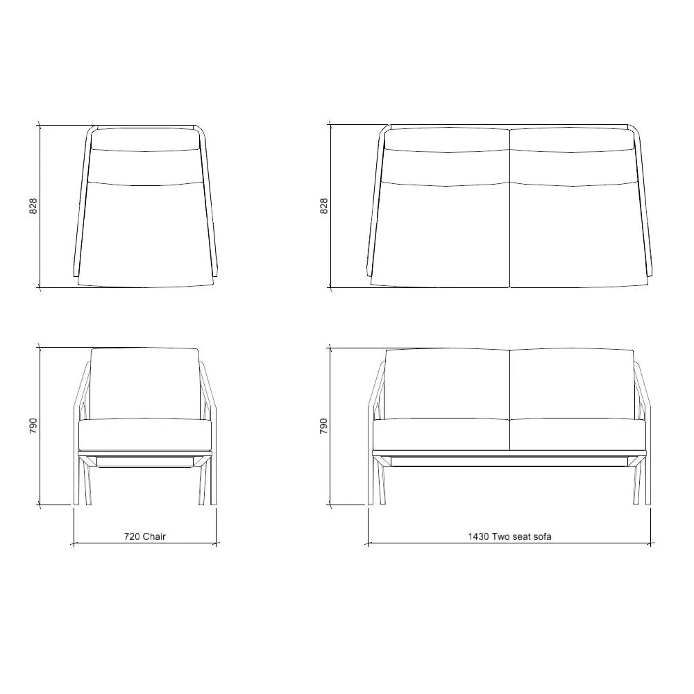 Two Seater: W 145 x D 90 x H 80 x SH 42 cm