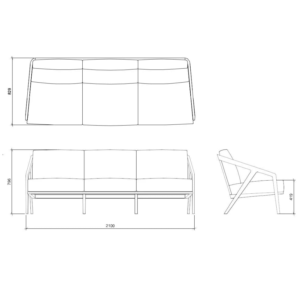 Three Seater: W 210 x D 90 x H 80 x SH 42 cm