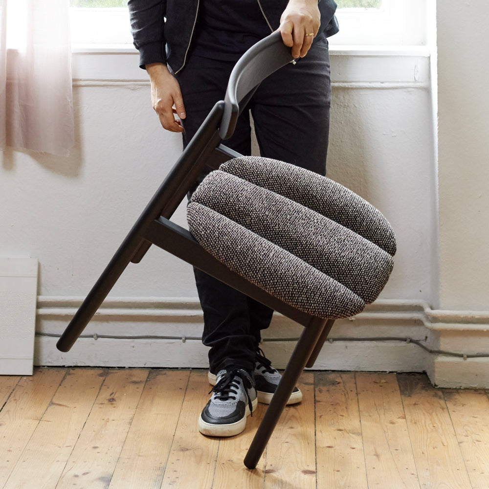 Finishes: solid ash in natural oak stained or black ash stained finishes. Refer to the Coedition Materials Catalogue. The seat can be upholstered in Category A, Category B and Category C fabrics. Refer to the Fabrics tab for more details: select the appropriate Fabric Category amongst the options and finally enter the fabric reference of your choice in the "Notes to Do Shop" section at the checkout. More upholstery - including COM - and wood options are also available although they might require MOQs. Contact us if you have any questions on options and finishes or on COM and MOQs.