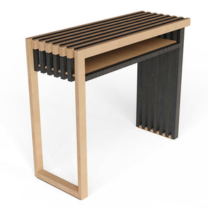 The Koto Console is a stylish and distinctive console table. The word "koto" comes from the old Finish word for home, an intimate space to relax and refresh the soul. The Koto console has elegant and minimalist lines, where function and form are in harmony. Contrasting wood colours add a vibrant touch, whilst its asymmetric legs bring a twist to the design. The console is made of birch plywood available in different finish combinations.