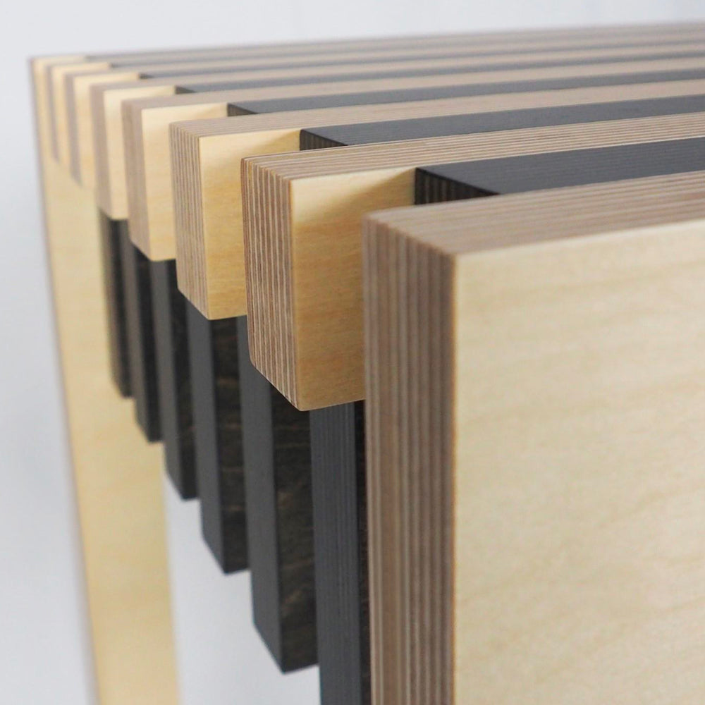 Structure: birch plywood, with a combination of natural and dark grey tainted, matte