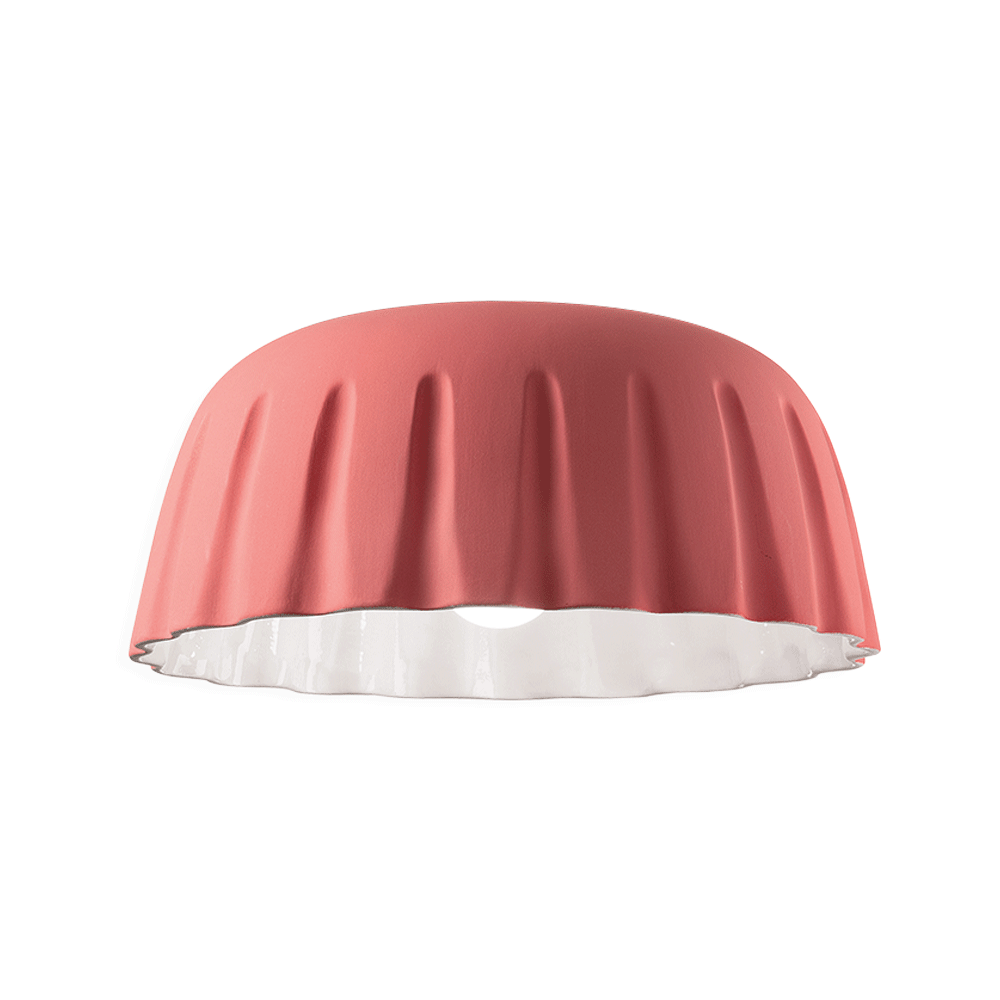 The Madame Grès Ceiling Light - C2572, with its undulating surfaces and vertical inlays repeating along the entire perimeter, evokes a pleated garment or flowing fabric rather than a rigid, motionless element.