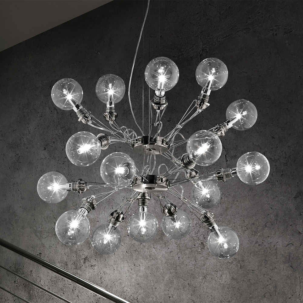 The Matrix Otto Suspension Light is made of 16 thin metal arms arranged in 2 rings of 8 arms. The arms are adjustable, making it possible to change the direction of the light bulbs at the end of them. Matrix is available in two finishes: matt black or brushed nickel.