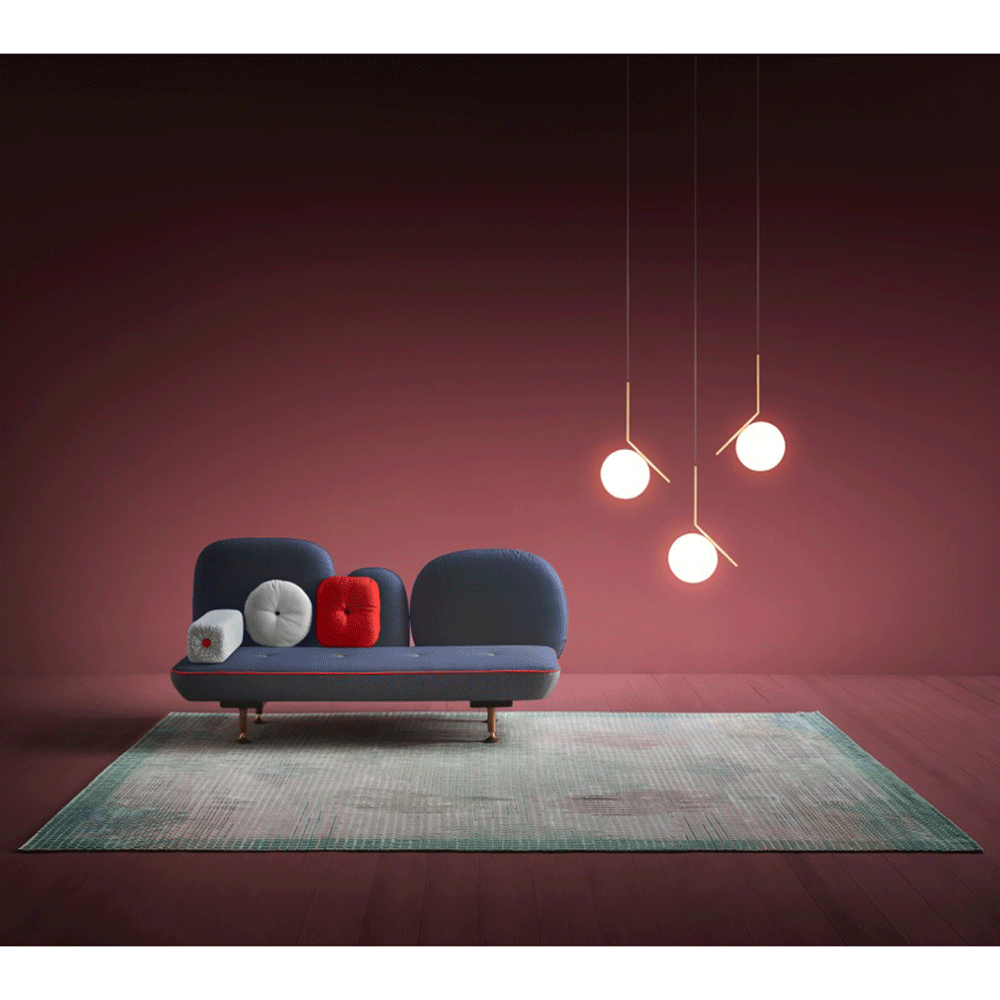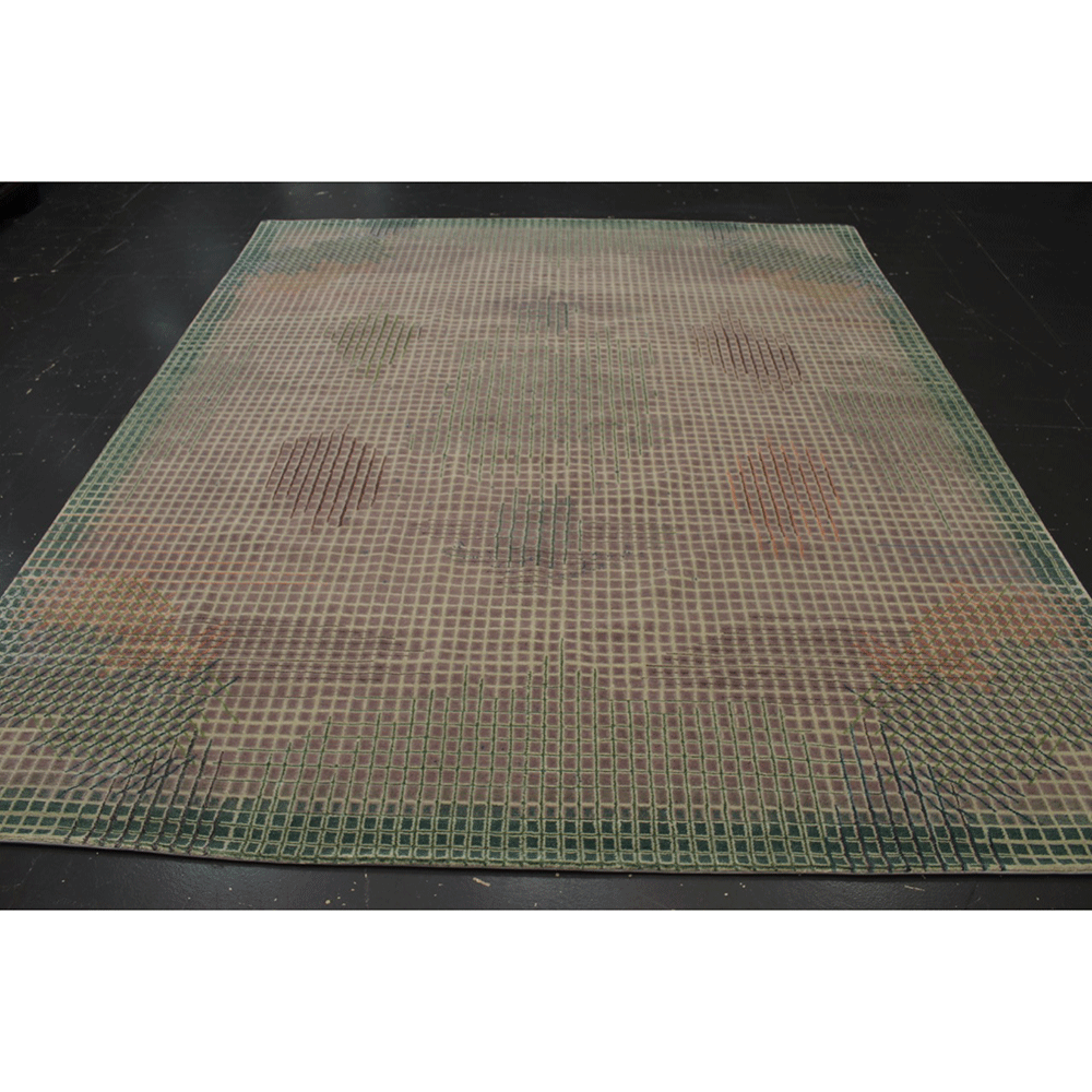 The Meteo Rug is a contemporary reinterpretation of classic Persian rugs. Colours are used to create veritable soft patches similar to light clouds of embroidery. Using skilful artisan techniques from Nepal - similar to pointillism - the faded effect of the weft makes it possible to create a geometric design through blurred lines. The technique is based on the use of individual coloured threads of wool and silk for each point of the design, as if each knot is a single piece of a mosaic.