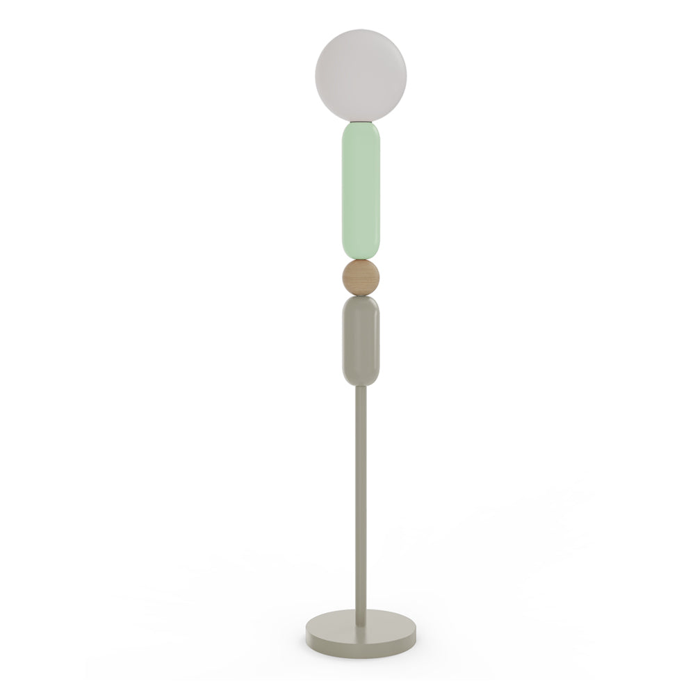 Play - Floor Light is a colourful, playful and sculptural floor light featuring a metal structure with metal or wooden finishes.