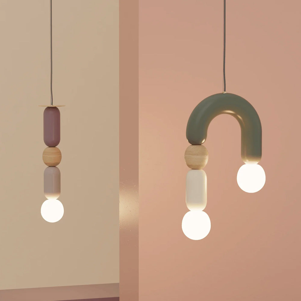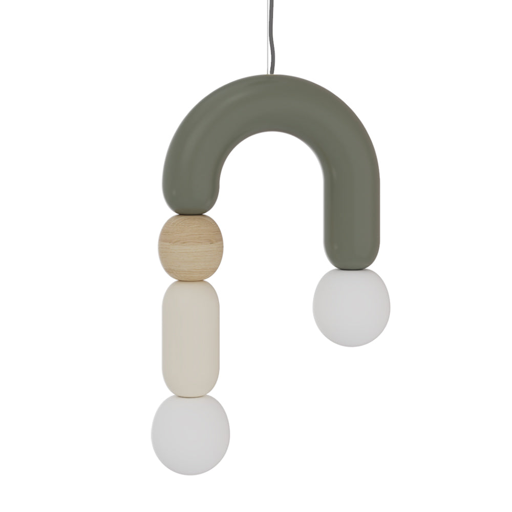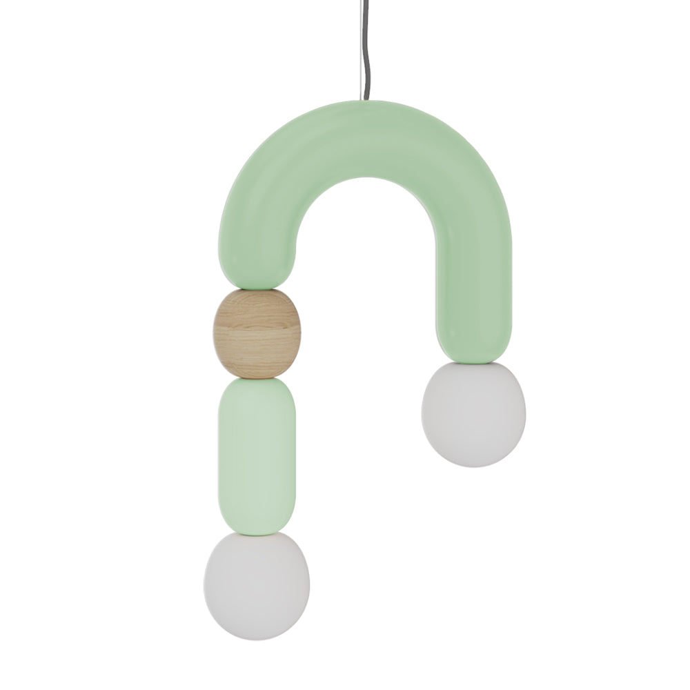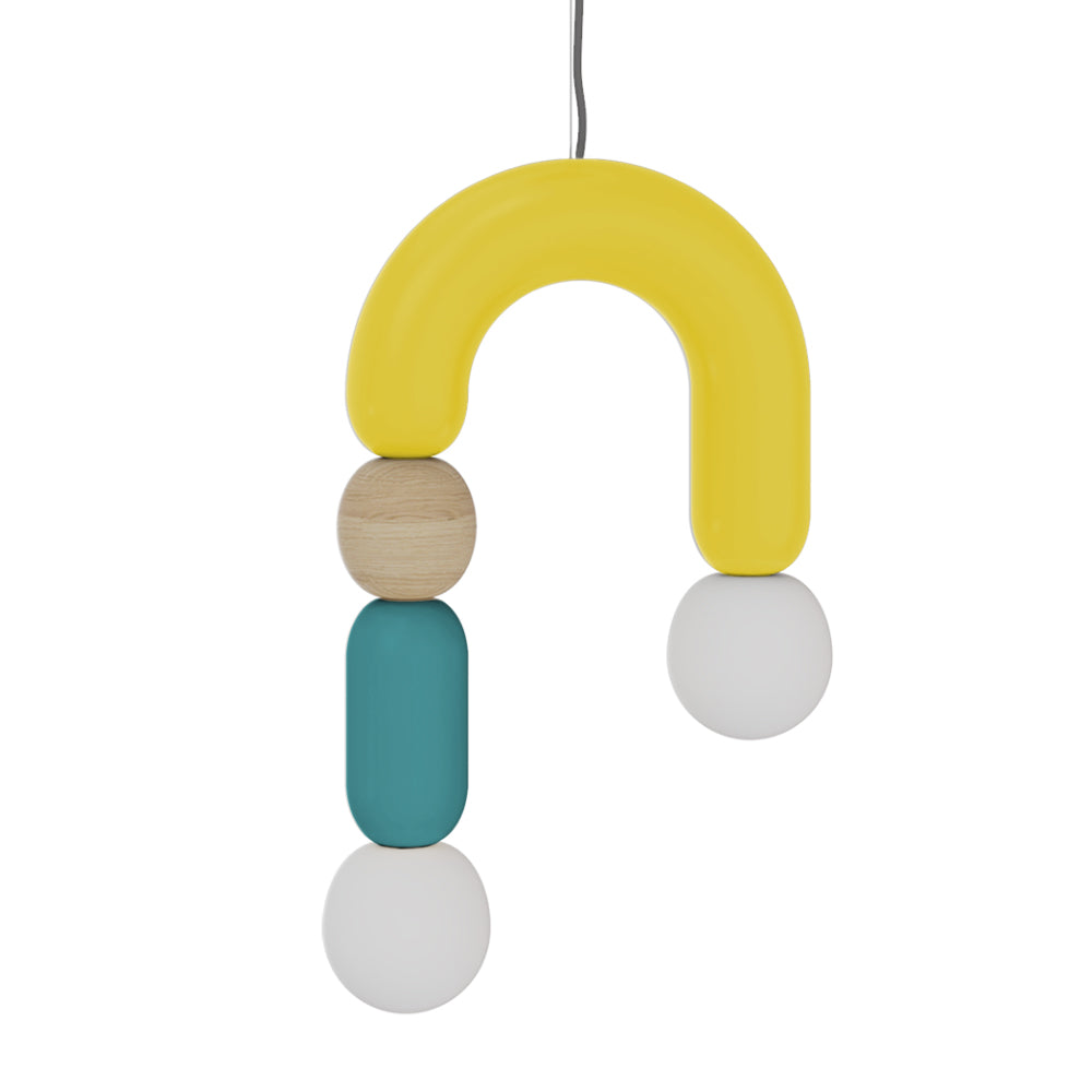Play II - Suspension Light is a colourful, playful and sculptural suspension light featuring a metal structure with metal or wooden finishes.