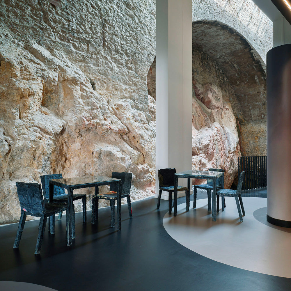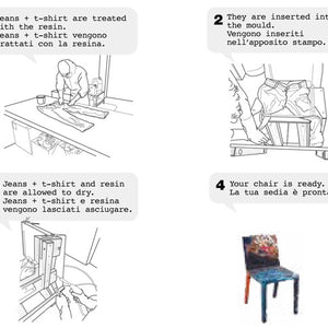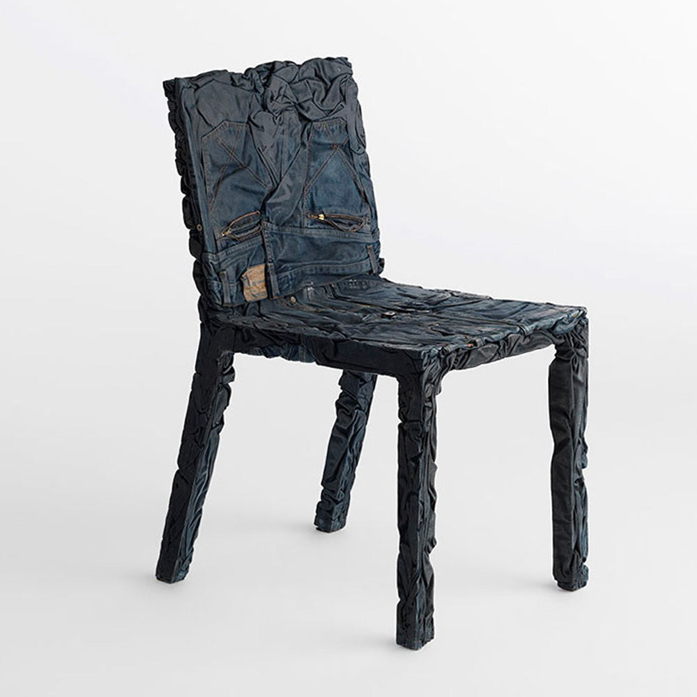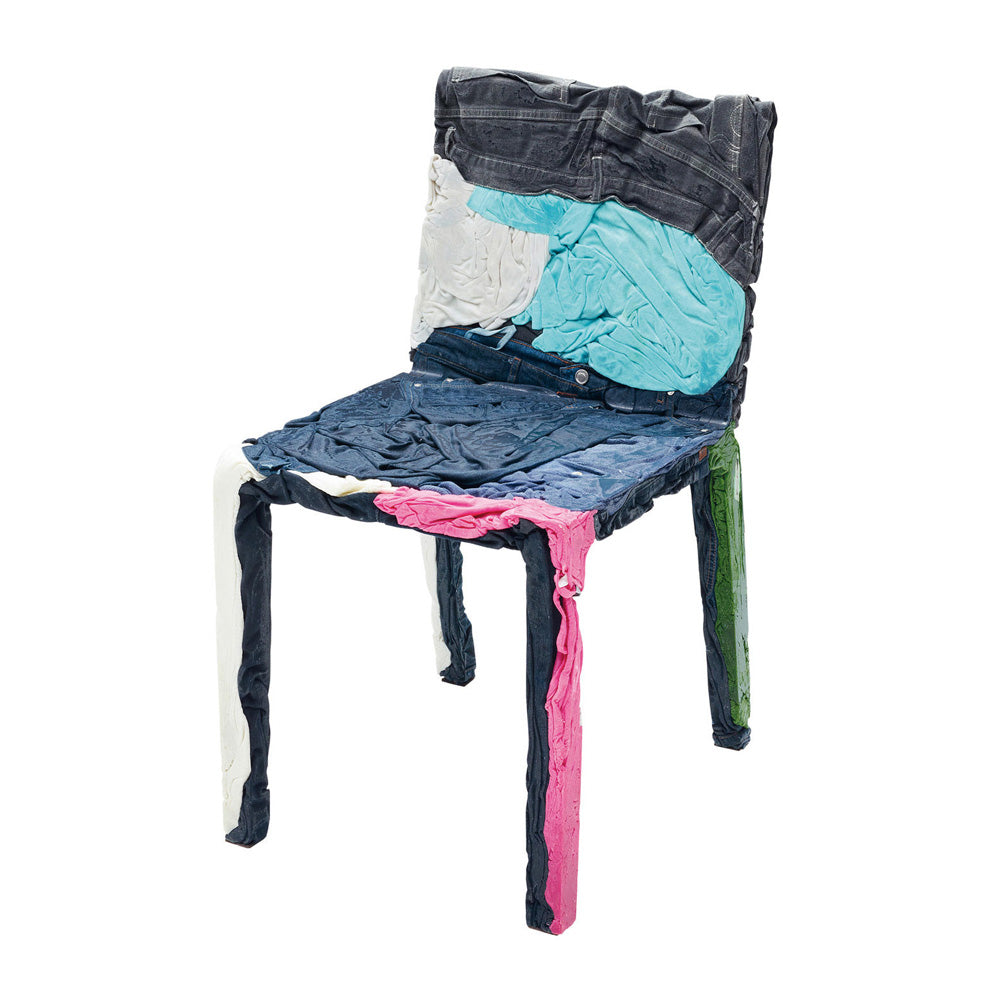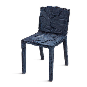 The Rememberme chair embodies the current focus on sustainability. It is made of jeans and cotton t-shirts mixed with a special resin, creating a firm chair which retains the unique colours and textures of the upcycled garments. As a result every chair is unique. The Rememberme chair can be customised with jeans and cotton t-shirts provided by the customer (for larger quantities only) - please enquire for further details.