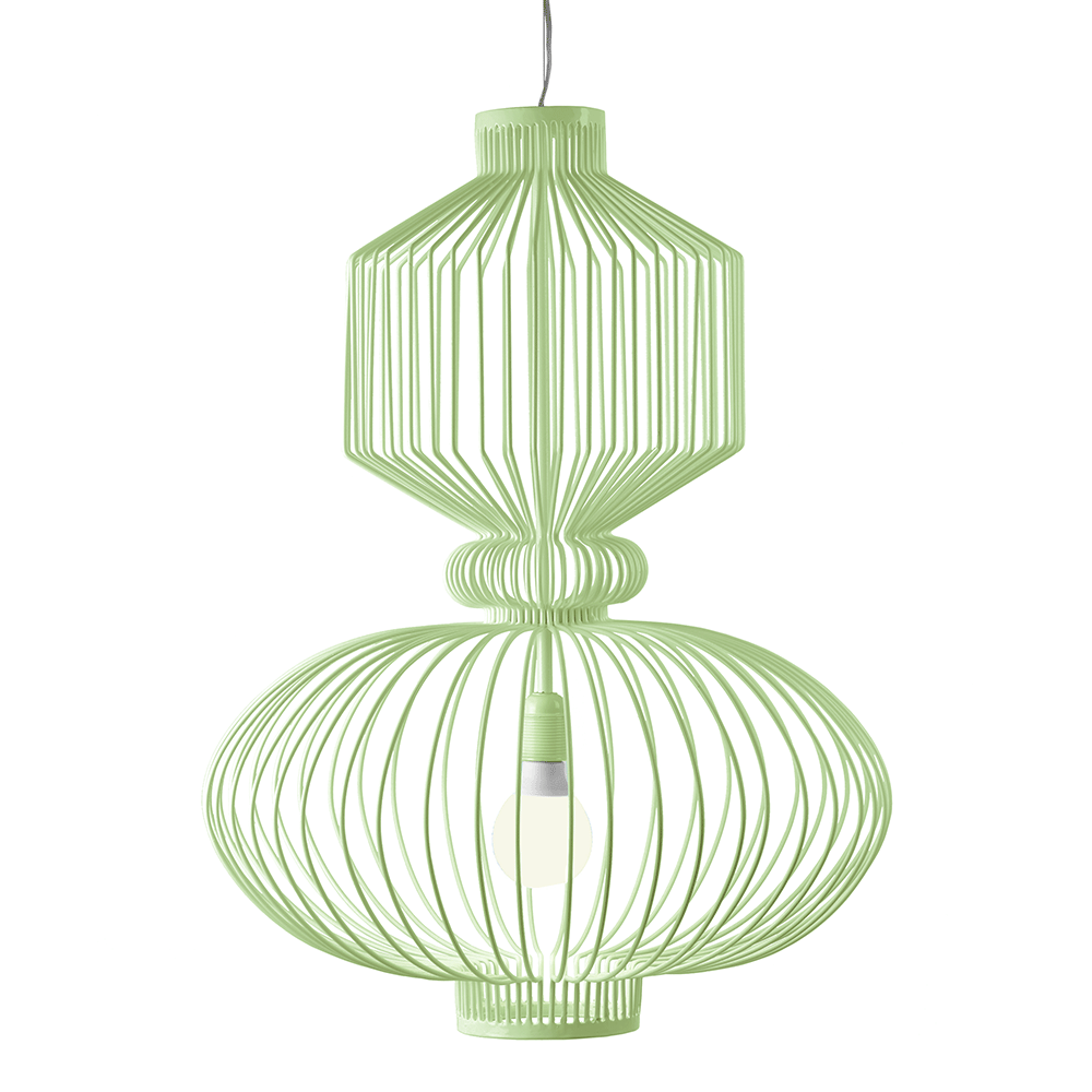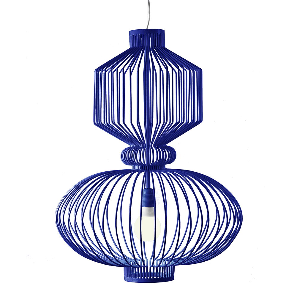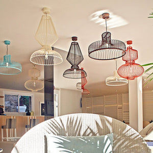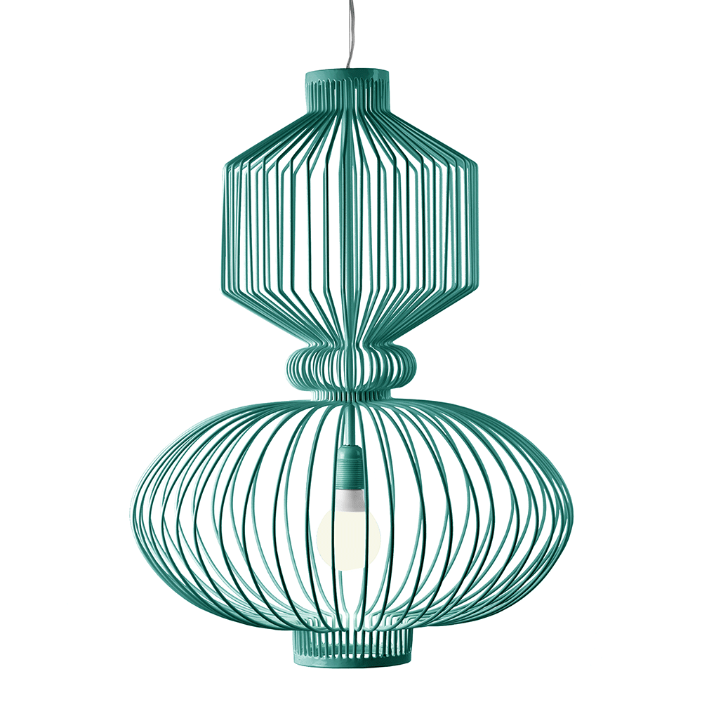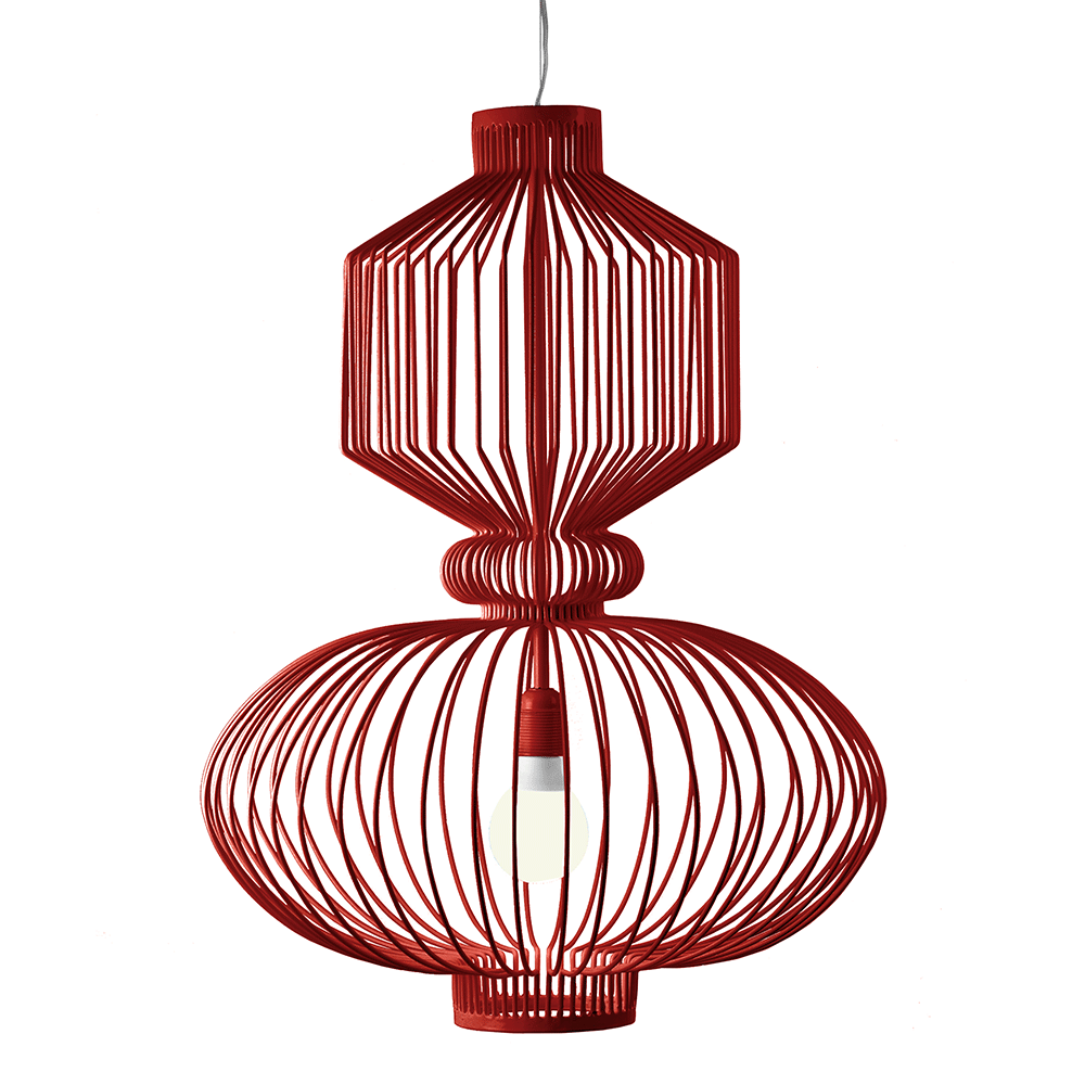Revolution - Suspension Light is a sculptural and impactful suspension light featuring a distinctive structure made with metal rods which look like cages stacked on top of each other.