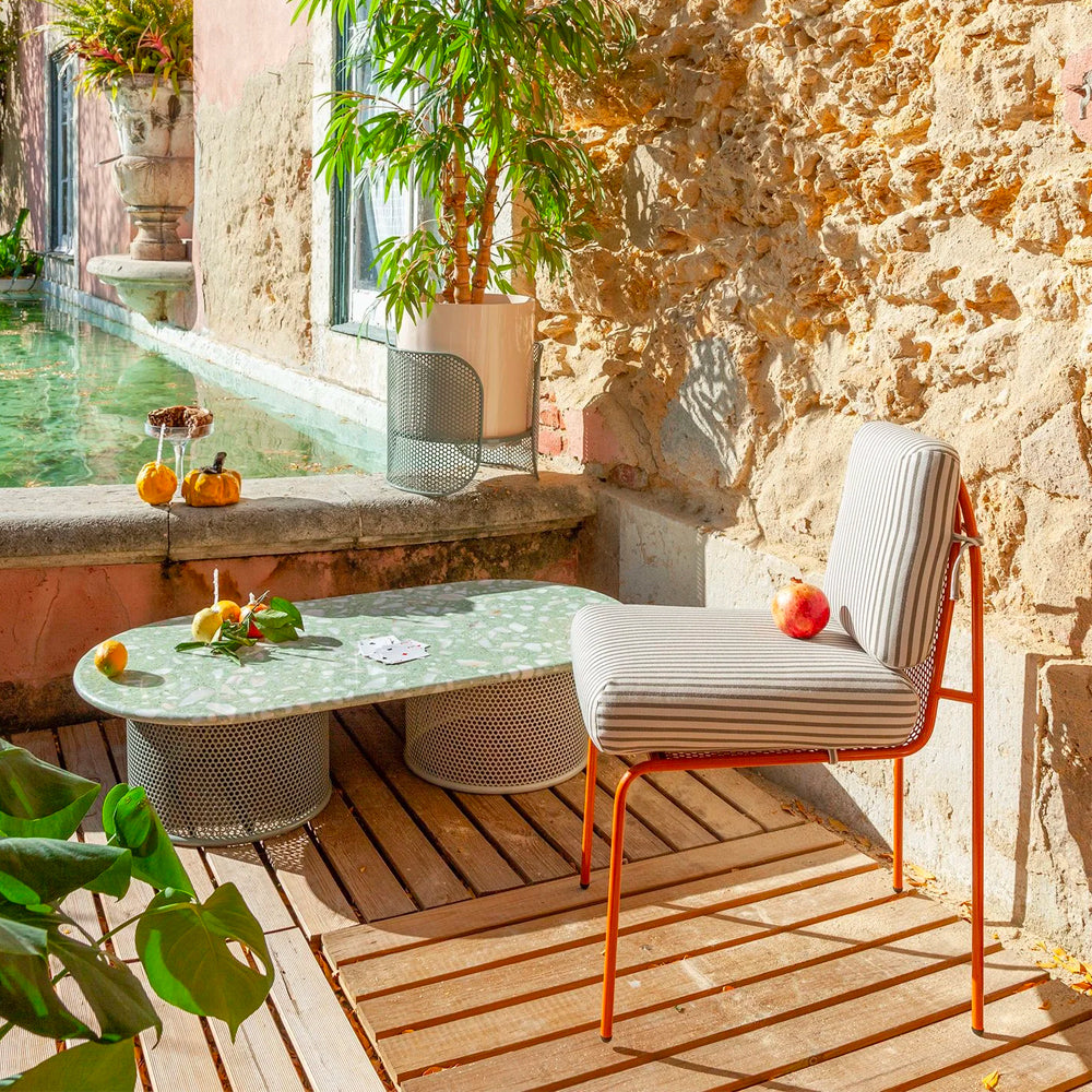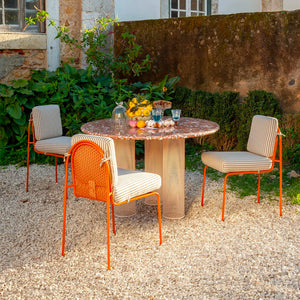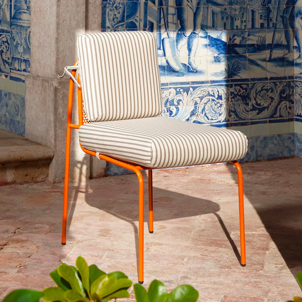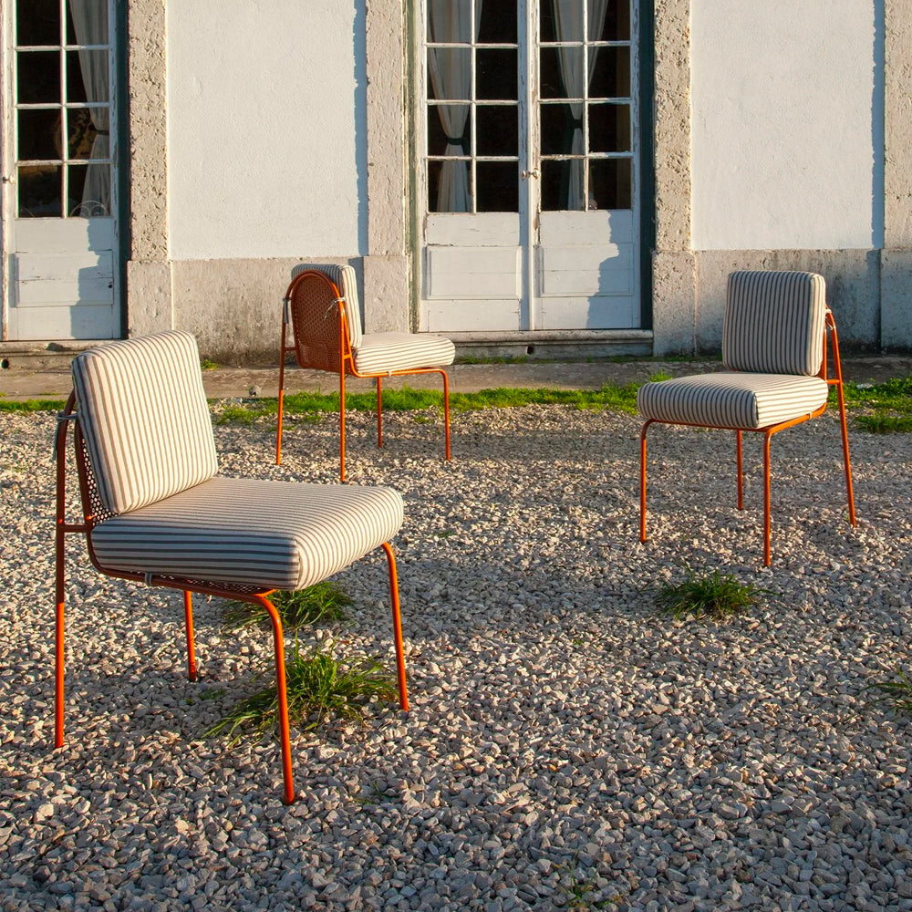 The Riviera Chair is a steady, functional and elegant chair: the seat and back are upholstered with removable cushions for increased comfort, whilst the metal structure provides perfect stability. Cushions can be removed to reveal the complete metal structure, seat and back of the chair. Riviera is conceived for outdoor living at its best!
