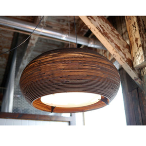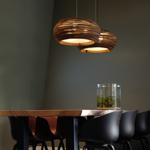 The Scraplight Ohio Suspension Light is a versatile and stylish lamp that provides warm, intimate and functional lighting for any occasion or type of space. At night, the corrugation in the shades creates beautiful patterns of light and shadow, transforming the surfaces of a room.