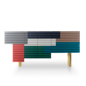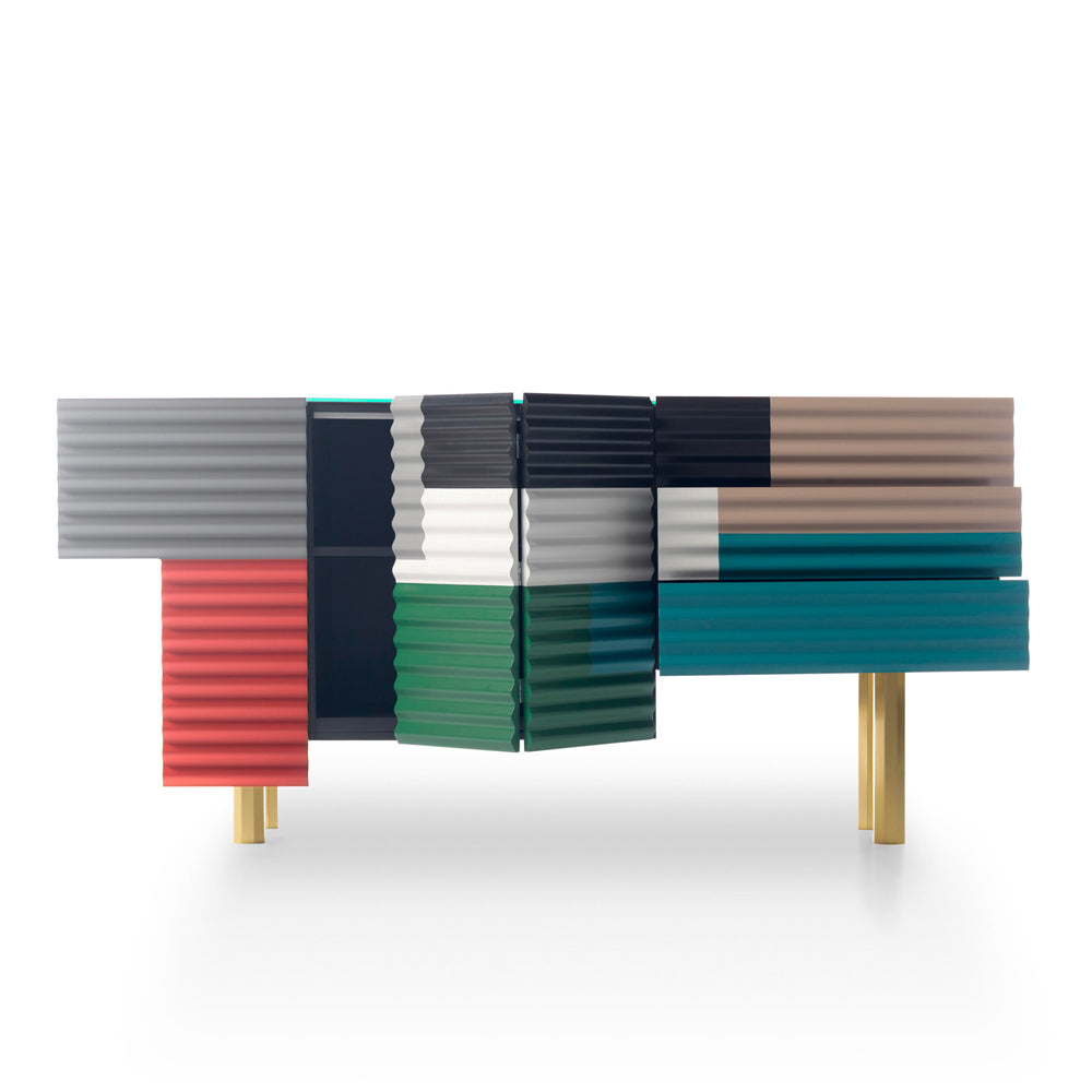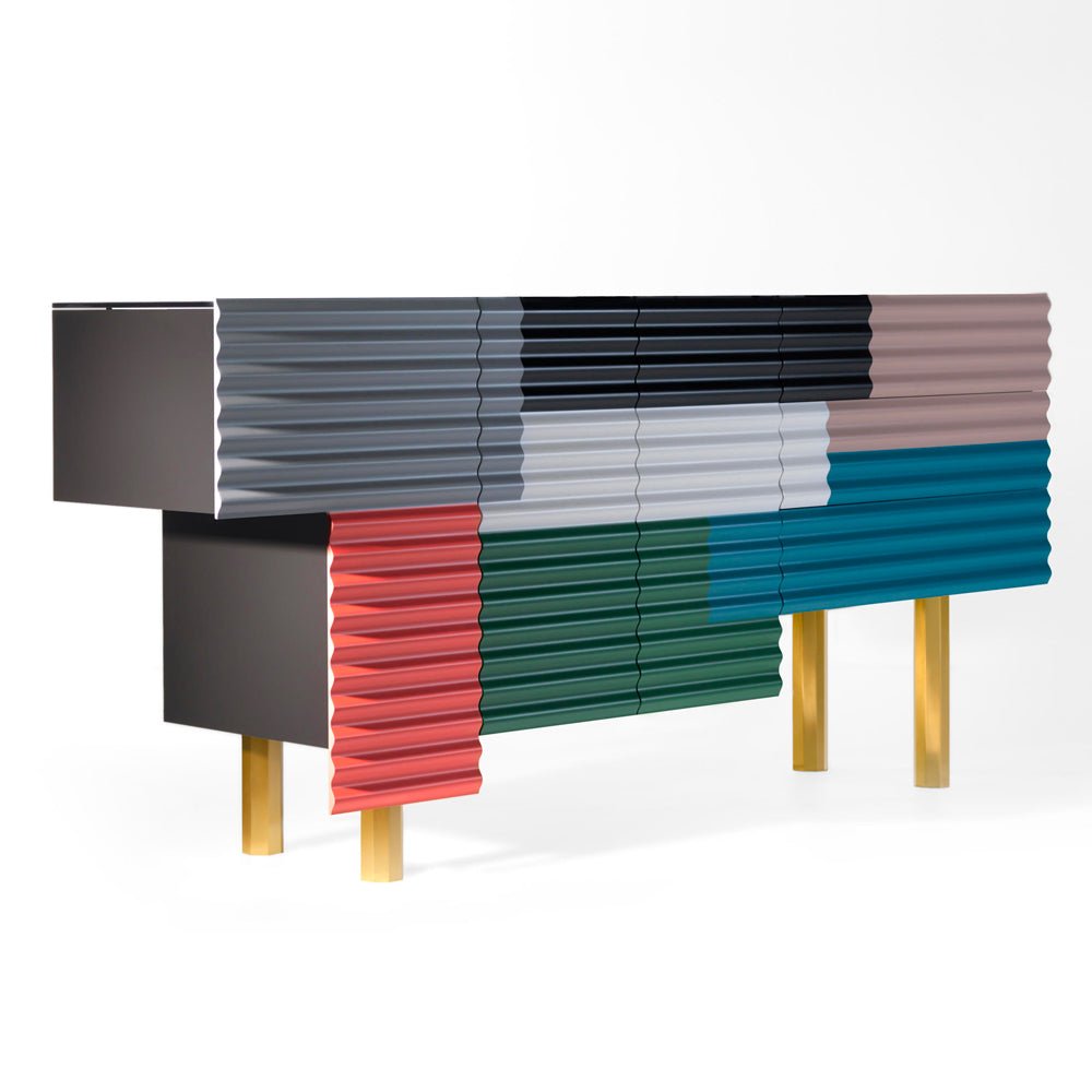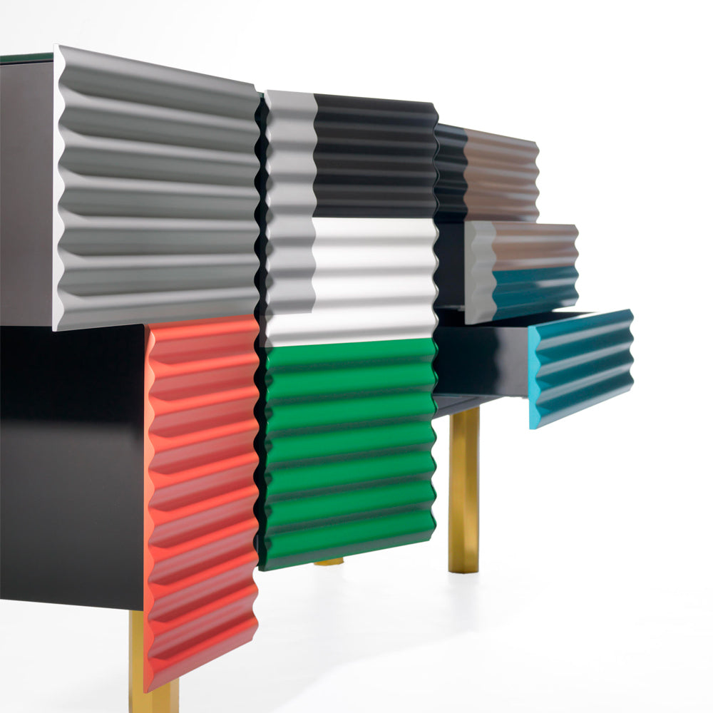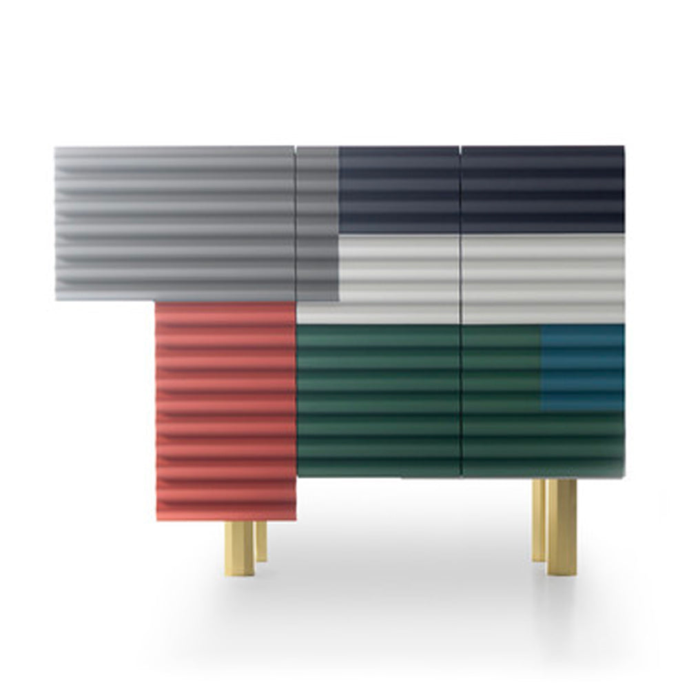 The Shanty Cabinet is an evocative design inspired by the improvised structures made from corrugated iron or plastic sheets found in shanty towns the world over. The Shanty cabinet is available in 2 sizes: Large or Small and 2 colour combinations: Summer (multi-coloured) or Winter (grey and white). The Large version comes with folding doors and a set of three drawers whilst the Small version comes only with folding doors.