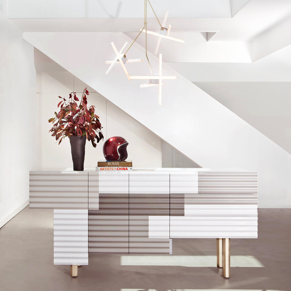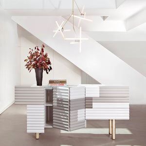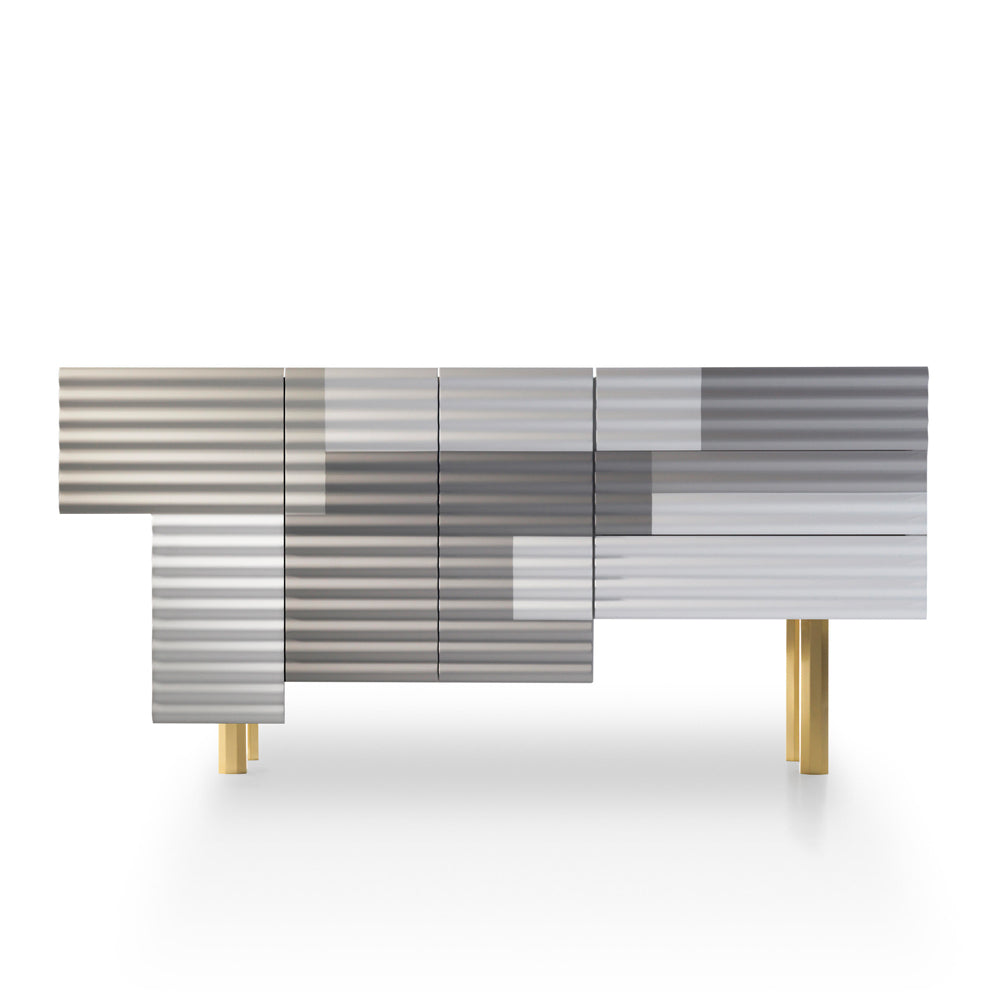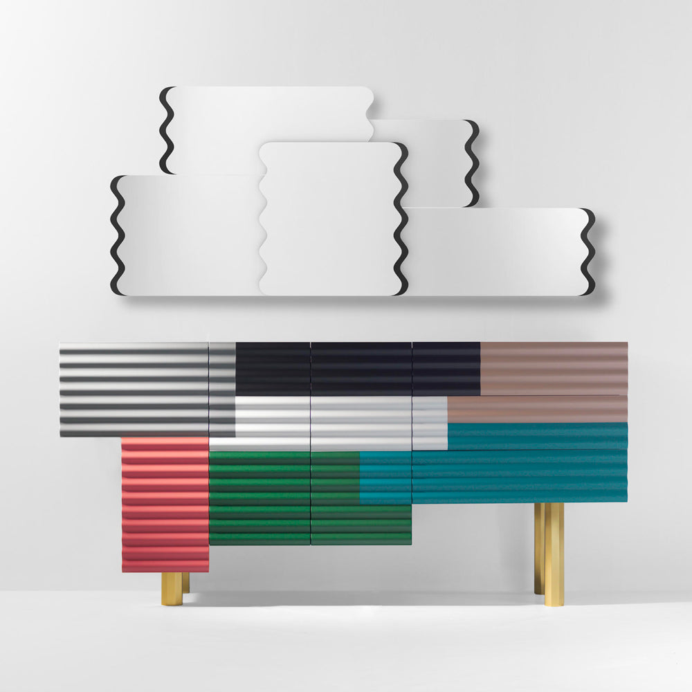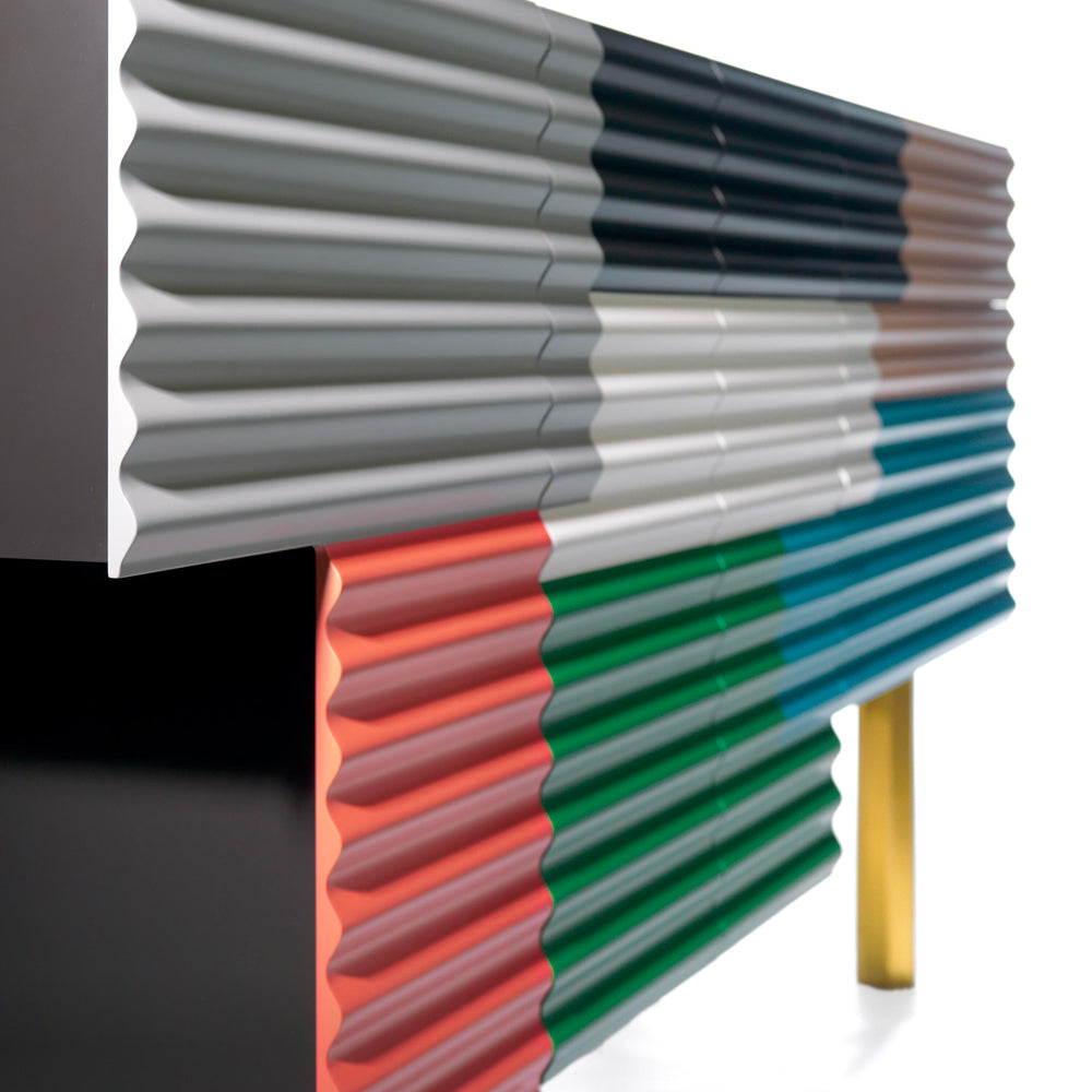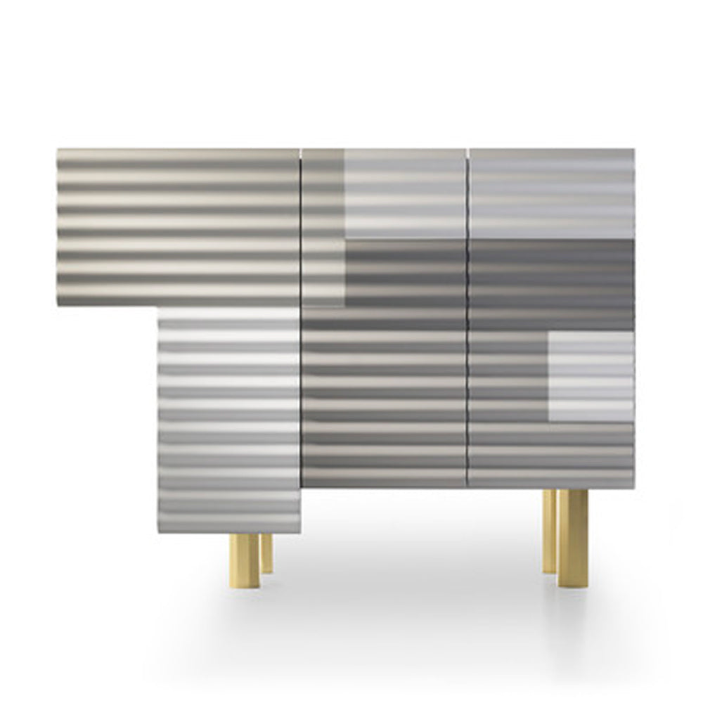 The Shanty Cabinet is an evocative design inspired by the improvised structures made from corrugated iron or plastic sheets found in shanty towns the world over. The Shanty cabinet is available in 2 sizes: Large or Small and 2 colour combinations: Summer (multi-coloured) or Winter (grey and white). The Large version comes with folding doors and a set of three drawers whilst the Small version comes only with folding doors.
